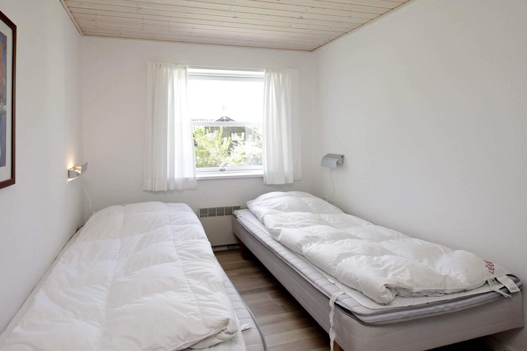 Holiday cottage from 1964 and remodelled and renovated in 1995/2008. There is an 18 m² large swimming pool and a whirlpool. The living room has i.a. TV with satellite and a high chair. There is limitless fibre-optic broadband. There are 3 terraces surrounding the house where you can enjoy the sun and have barbecues. The house is located on a 891 m² large plot with plenty of shelter and cosy nooks where you can enjoy the sun. There are sandpit and swing for the children. Free admitaance to water park. No letting to youth groups.