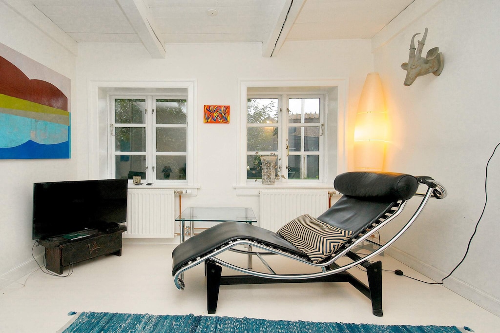 Ligger meget centralt midt i byen/på havnen, Huset er et smukt gammelt bindingsværkshus, Og indrettet med megen stor personlighed,