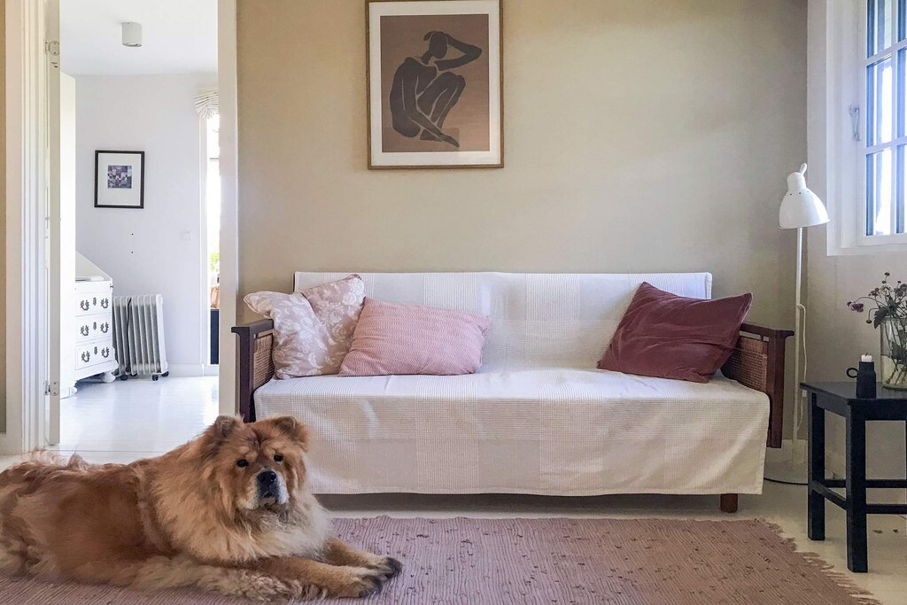 Lys og stemningsfuld indretning, Dejlig have hvor børnene nød trampolinen,