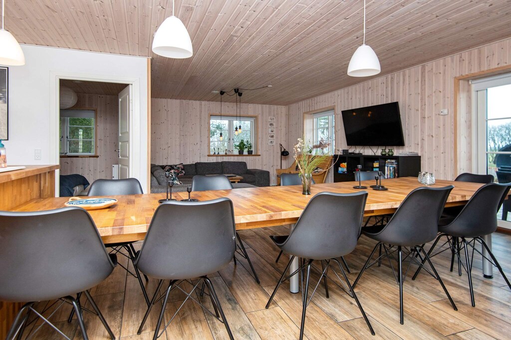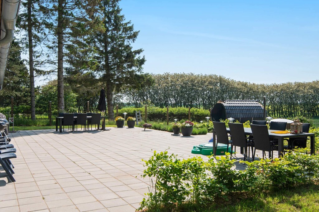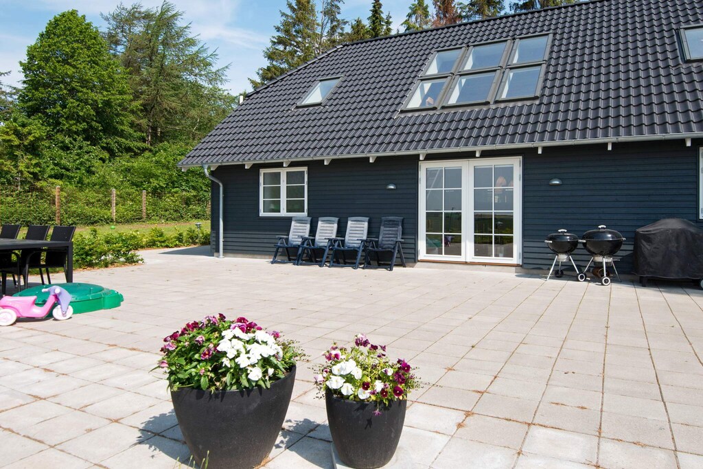 Holiday home on 2 levels with a view of the open landscape by Selkær Mølle. From the ground floor as well as the 1st floor there is a fantastic view. The house has an indoor whirlpool and sauna and out in the garden there is a wilderness bath where you can sit and enjoy the fantastic view. There is a 45 m2 living room and kitchen in one and four good bedrooms divided into one on the ground floor and three on the first floor. The house is furnished with modern furniture and not least the large dining area is incredibly attractive. Not for rent to youth groups.
