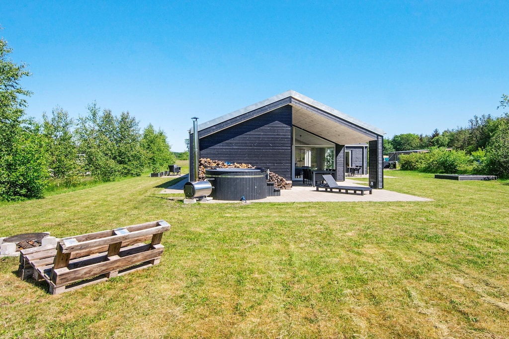 At Fjellerup Strand you will find this cottage with indoor whirlpool and sauna as well as an outdoor wilderness bath, which you can enjoy all year round. The cottage is of the best quality and the owner has meticulous attention to detail. The house is furnished with living room with sloping ceilings, free internet and high chair. There is a separate activity room with i.a. table tennis, where the whole family can compete against each other. In addition, the house has a very well-equipped kitchen and two bathrooms, one of which has a whirlpool and sauna. The rooms are furnished with high sleeping comfort and plenty of space. In the garden you will find the wilderness bath, which you can enjoy on both hot and cold days. The children can play and play ball on the lawn while you can enjoy the view of the small lake from both the open and covered terrace. Not for rent to youth groups.