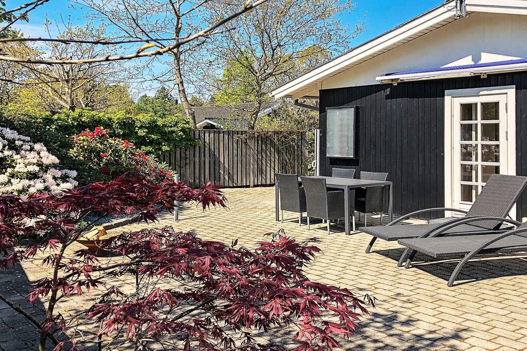 Meget hyggeligt indrettet og møbleret, To soveafd, med hvert sit bad, Dejlig lukket have med mange terrasser til ophold, Gode legemuligheder også for små børn, Kort afstand til den dejlige strand,