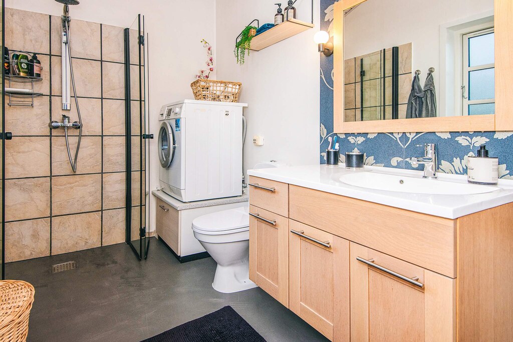 At Fjellerup Strand you will find this well-kept cottage, where you can clearly feel the cosiness and the bright colors that make you feel at home from the moment you enter the house. The cottage is furnished with a well-equipped kitchen and good large living room as well as four well-appointed bedrooms with good sleeping comfort. Two bathrooms with shower. The house is located on 918 m2 large plot with 150 m2 terrace, where you can always find a place in the sun. On the less sunny days, you can head to the living room, where you can sit around the stove. Not for rent to youth groups.