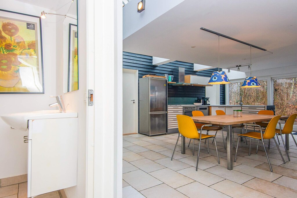 Unique and exciting architect designed holiday cottage with many interesting details. These include skylights, which means that you get a fantastic light throughout the house. The kitchen serves as a natural gathering point for the whole family. Large bathroom with whirlpool and sauna where you can relax after a long day in the area. Located on a closed road which means that the area is quiet. There is a large terrace.A refundable deposit might be charged closer to your check-in date. The security deposit ensures a smooth stay and covers any additional services or consumption charges.This deposit covers utilities consumed during your stay and any additional services that may be taken.The final amount will be adjusted based on actual meter readings, actual usage of extra services, and any remaining balance will be refunded within 21 days after checkout.This deposit simply acts as a prepayment for charges that you would anyways pay for, ensuring a seamless stay and check-out experience.