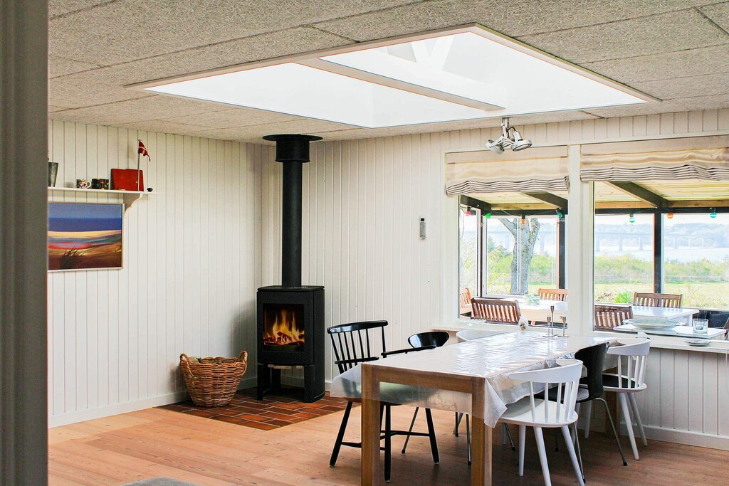 Cottage on large natural plot with lots of trees and only approx. 200 m to the Limfjord. From the ground there is a fantastic view over the Limfjord towards Sallingsund and Mors. Large activity room with table football, darts and game console. The cottage is furnished with living room with wood burning stove, free internet, Netflix as well as DVD player and stereo system. The washing machine and dishwasher are located in the basement just below the kitchen. There are 2 football goals so adults and children can play football on the large 50m x 20m lawn behind the cottage. There is also a campfire in the garden. There are 2 sea kayaks for free use (used at your own risk / insurance). There is a garden trampoline, which can also be used at your own risk / insurance. Not for rent to craftsmen and youth groups.