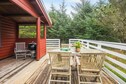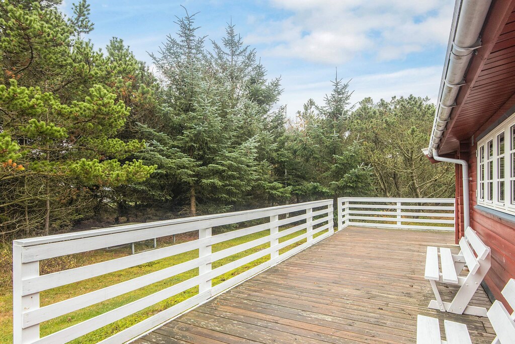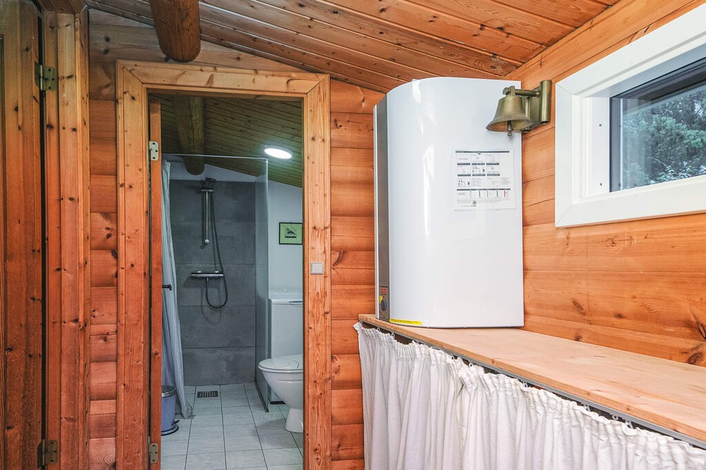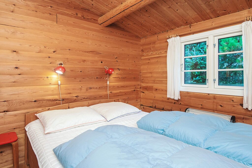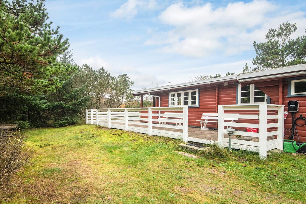 Log house located in undisturbed surroundings by Grærup. The cottage has an open kitchen and living room with wood burning stove. From the living room there is access to a lovely wooden terrace with a view of a meadow area where red deer and roe deer often roam. Not for rent to youth groups. Free access to water park.