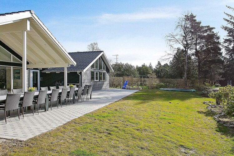 Well-furnished holiday cottage with swimming pool and activities located approx. 500 m from the ocean at Udsholt Strand. The pool section has both a large swimming pool with counter-current system, large built-in prefilled whirlpool and a sauna for 4-6 people. The pool is 18 m² and has a slide for the children. The activity room has table football, billiards, electronic darts and table tennis. There are TVs in more rooms and both PlayStation4 and DVD player. The house is very spacious and well-dimensioned and built around 2 separate sleeping sections. Each section has a bathroom and there is an extra bathroom adjacent to the pool area. The living/dining room is tastefully furnished with stereo set with CD player, TV, DVD player, high chair, sofa area and a wood-burning stove. There are 2 spacious mezzanines; one has mattresses and the other is for playing and has bean bags and a TV. The well-furnished kitchen has a large fridge, freezer and dish washer. In the garden you will find a trampoline (usage at own risk/insurance). No letting to youth groups.