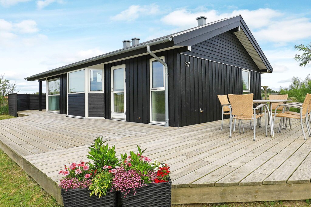 Bright and well-furnished holiday cottage at Grønhøj Strand. There is open concept living room and kitchen, 3 bedrooms, mezzanine and a bathroom with underfloor heating. Open terrace surrounding the house as well as a small, covered west-faced terrace. There is a air-to-air heat pump which helps make the energy costs low. Due to the large window sections the house is very bright in a typical Danish cottage style. The terrace has direct access to the level plot where you can play ball and there is a small fireplace as well as a swing set. The plot is an open natural plot. No letting to youth groups. A refundable deposit might be charged closer to your check-in date. The security deposit ensures a smooth stay and covers any additional services or consumption charges.This deposit covers utilities consumed during your stay and any additional services that may be taken.The final amount will be adjusted based on actual meter readings, actual usage of extra services, and any remaining balance will be refunded within 21 days after checkout.This deposit simply acts as a prepayment for charges that you would anyways pay for, ensuring a seamless stay and check-out experience.