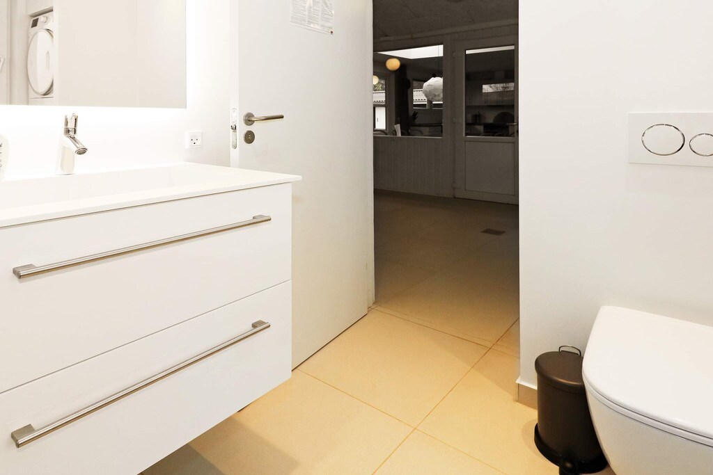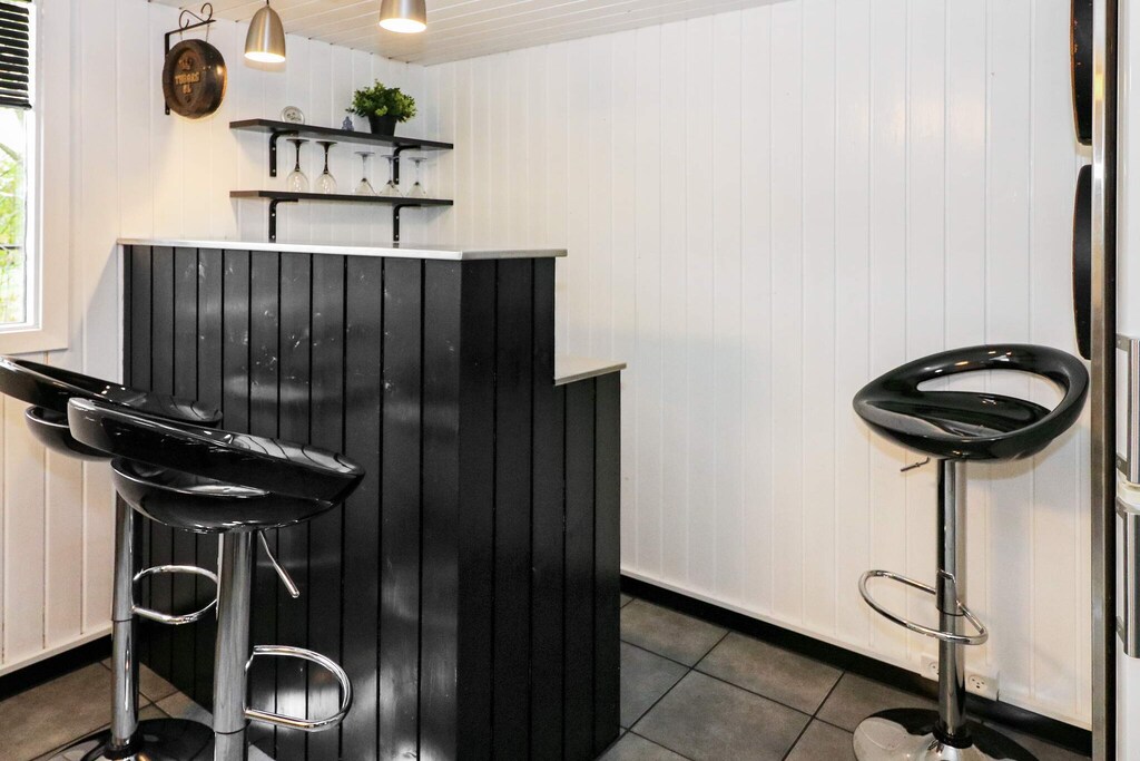 Tucked away at the end of a quiet gravel lane, just a short stroll from the charming seaside village of Øster Hurup, this holiday home feels like a place made for togetherness. The first thing you’ll notice is the sense of space – bright rooms opening to a terrace where the sea breeze drifts in, the laughter of children carrying across the garden. Mornings begin slowly here, with coffee at the long dining table and sunlight filtering through the windows, while plans for the day unfold: perhaps a swim, a bike ride to the harbor, or simply hours of relaxation at home. The heart of the house is its pool area, where a shimmering 25 m² swimming pool invites both playful splashes and quiet laps against the counter-current system. After a swim, sink into the warm whirlpool and let time stretch. Two bathrooms with underfloor heating make getting ready a pleasure, and the thoughtful layout of four bedrooms offers comfort for families and friends alike – two doubles, a twin room, and a cheerful bunk room for the kids. Evenings here are lively and warm. The activity room becomes a gathering place, with billiards, table tennis, foosball, darts, and a small bar counter for sharing stories late into the night. When the weather is kind, meals move outdoors onto the large terrace, partly covered so that long dinners can linger under the open sky. Children love the shelter in the garden, a little hideaway perfect for adventurous sleepovers. Surrounded by nature and yet close to the sea and town, this home offers both privacy and possibility – a place where every day feels like a new memory waiting to be made.