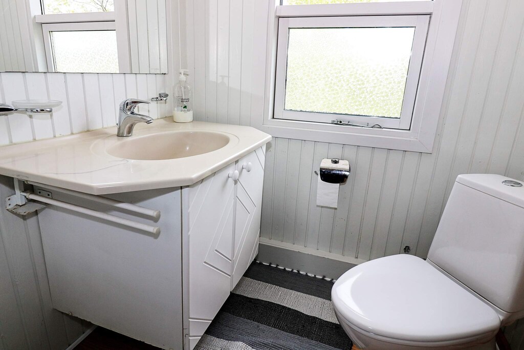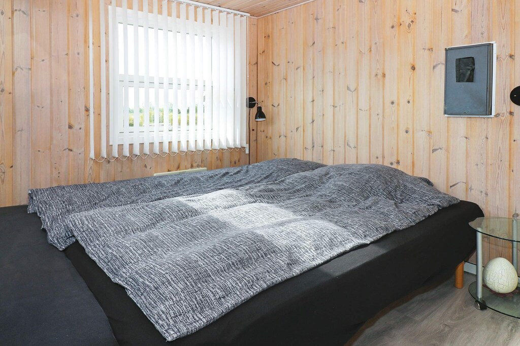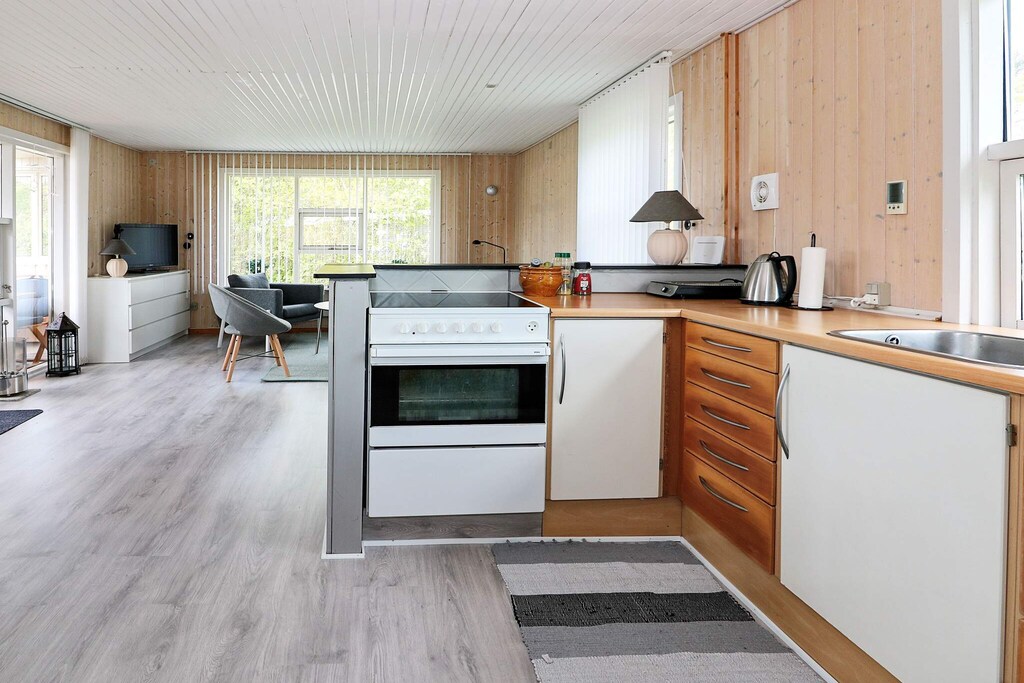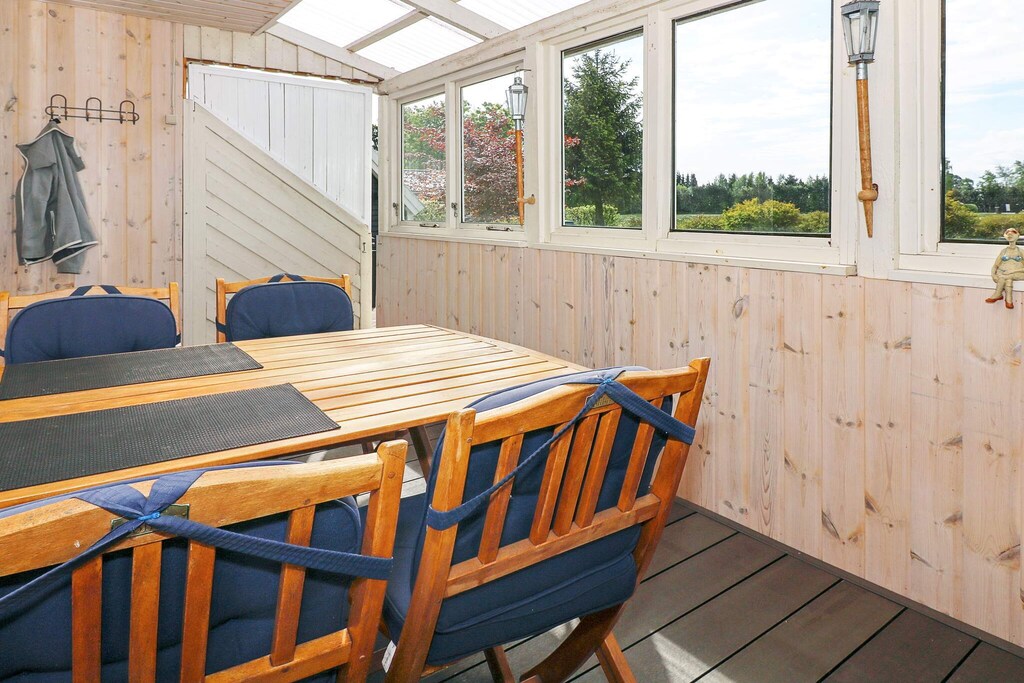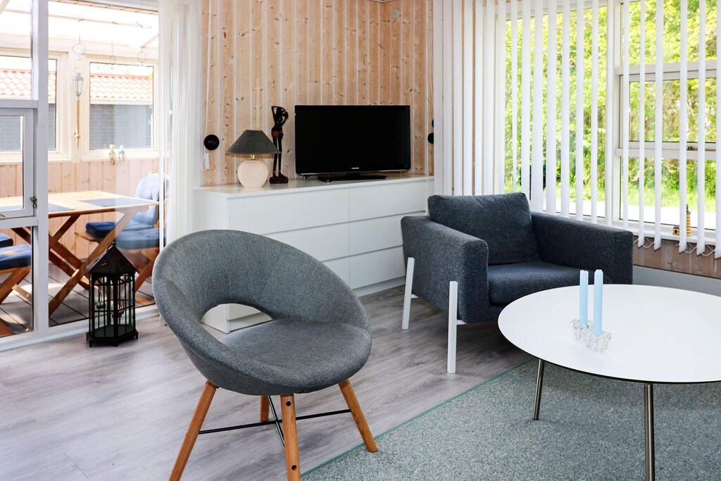 Holiday home located within walking distance to the water in a quiet holiday home area in Øster Hurup. Bright living room with good dining area, which is in open connection with the kitchen and with access to the conservatory and terrace. In addition to Danish and German television, there are e.g. Eurosport and Disney Channel. Double room and twin room. Bathroom with shower and toilet. At the terrace there is an annex with 2 single beds. From the conservatory and the terrace there are nice views of the fields. Not for rent to youth groups.