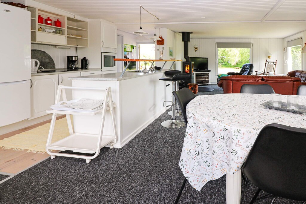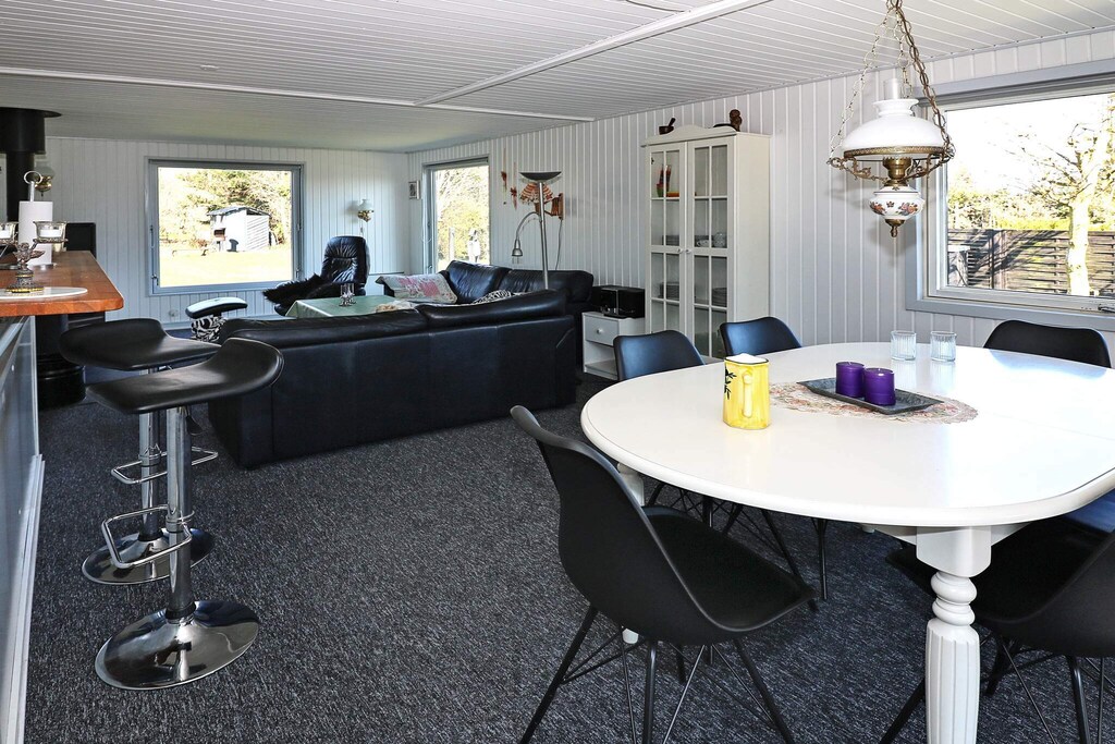 Holiday home located in a quiet area and within walking distance to the sea at Øster Hurup, which you can see from the holiday home grounds. There is a large, bright and spacious living room in open connection with the kitchen and good dining area as well as access to a partially covered terrace. Bedroom with double bed and a room with 3/4 beds and a bunk bed. There is a bathroom with a bath and shower. Secluded garden with plenty of space for relaxation and play in the sandpit as well as a large and partially covered terrace with garden furniture and sun loungers. Not for rent to youth groups.