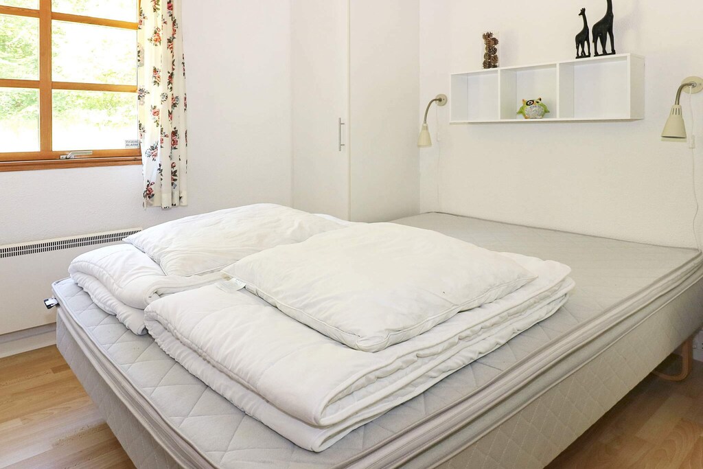 Holiday home located in a quiet holiday home area by Helberskov and within walking distance to the sea. The cottage has a living room with wood burning stove in open connection with the kitchen and with access to a partially covered terrace. There is a double bedroom and two twin bedrooms. Bathroom with shower and toilet. There's the Nintendo Classic Mini in the house with a lot of the old games from the 1980's and 1990's. The house is located on a nice plot with several terraces and with plenty of space. Not for rent to youth groups.