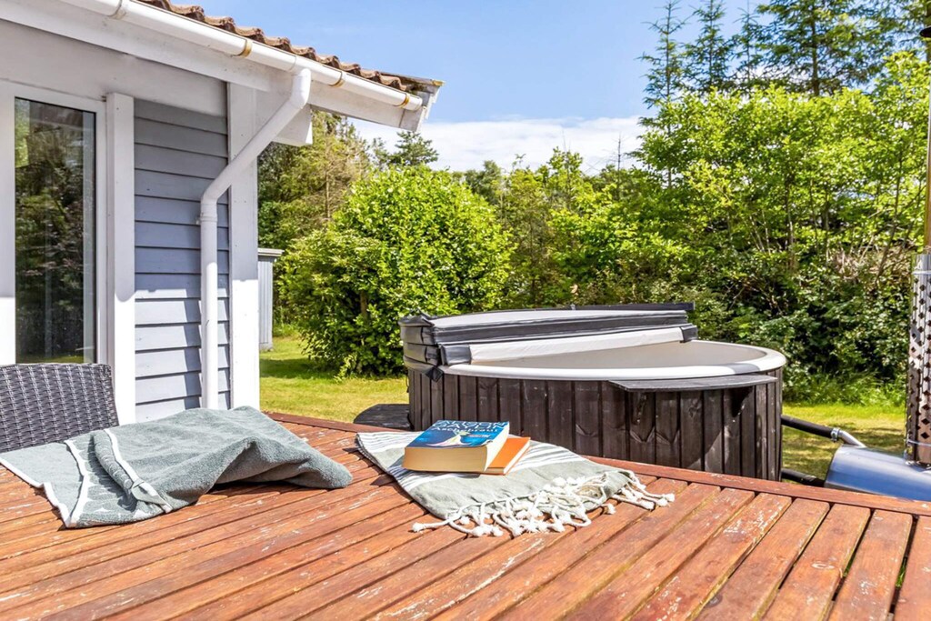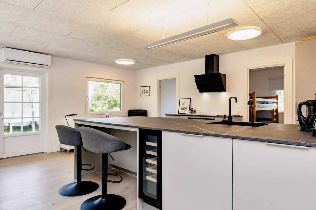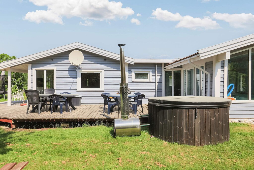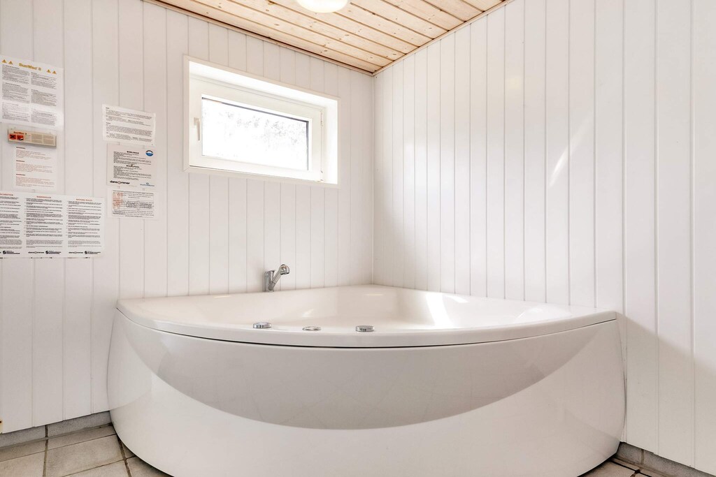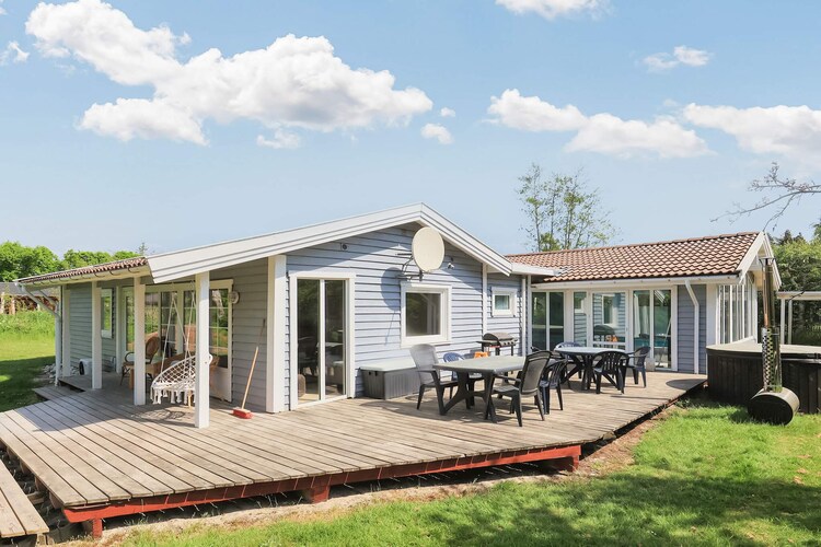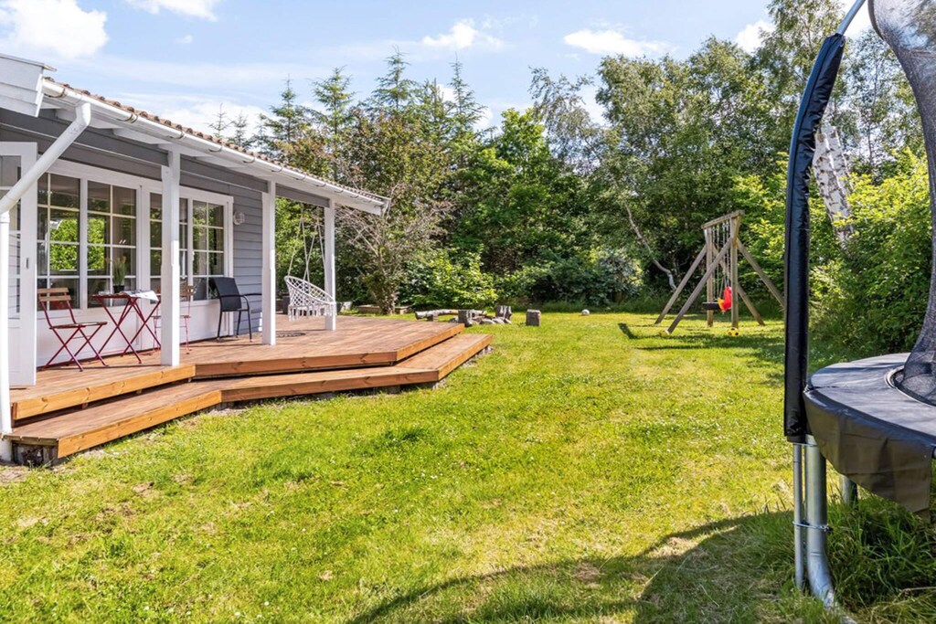 Cottage with swimming pool, whirlpool and sauna located in quiet surroundings at the end of a small road only 10 minutes walk from the sea at Als Odde. Bright pool area with whirlpool and sauna and access to a good sun terrace. There is an air / water heat pump to heat the swimming pool. Here you can relax and enjoy the sun after an active day. Bright living room with open connection to the kitchen and with access to a covered terrace. There are two good double bedrooms and a bedroom with bunk beds for four people. Two bathrooms. Unobstructed and partially enclosed garden with swing and trampoline (use of this is at the tenant's own responsibility / insurance) and fire pit and plenty of space for play. Not for rent to youth groups.