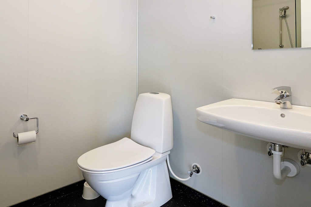 Holiday home located a few minutes walk from the sea at Øster Hurup. Bright and large living room in open connection with the kitchen. There is access to two large terraces all around the house. The cottage is divided with two bedrooms and a bathroom on each side of the living room, so it is ideally furnished for two families. Three double bedrooms, two of which can be separated into single beds and a room with a bunk bed. There are two bathrooms with shower and toilet as well as a good entrance hall. The house is located on a large plot with a swing set and plenty of space for ball games. Not for rent to youth and artisan groups.