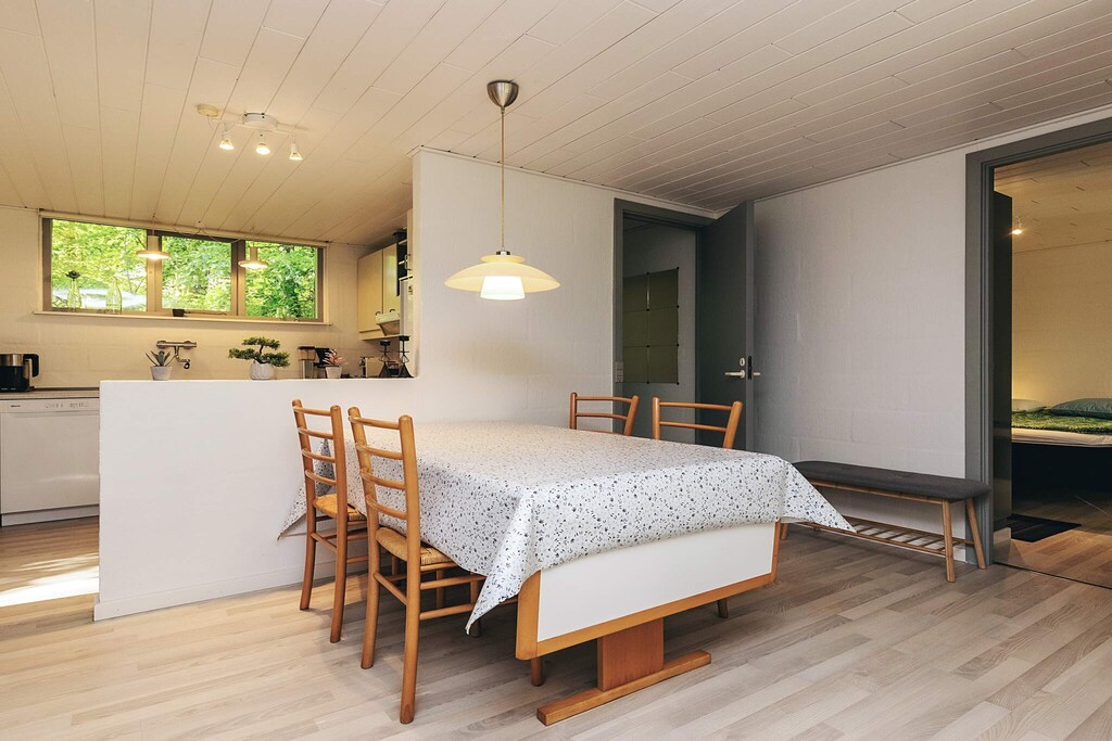 This spacious holiday home enjoys a beautiful location on a large, well-screened natural plot, just a few minutes’ walk from the water at Als Odde. Nestled in peaceful surroundings, it provides plenty of room for both relaxation and outdoor activities, making it an excellent choice for families who wish to combine comfort with nature experiences. The wide open setting allows children to play freely, while adults can unwind on the terrace or take quiet walks in the area. Inside, the house welcomes you with a bright, open-plan kitchen, dining, and living area that forms the heart of the home. Here you can gather around the dining table, relax in the sitting area, or light the wood-burning stove for added cosiness on cooler evenings. From the living space, you step directly onto a large, partially covered terrace, ideal for enjoying outdoor meals in both sunshine and shade. The property features three bedrooms in the main house: one with a double bed, another with a three-quarter size double bed, and a third with a bunk bed suitable for children. In addition, there is a charming annex with a double bed, connected to the main house by a covered terrace, providing extra privacy and comfort. The extensive grounds and surrounding nature invite you to spend time outdoors, whether playing in the garden, exploring scenic hiking trails, or taking advantage of the good fishing opportunities nearby. This tranquil area combines fresh air, coastal charm, and plenty of space, making it a perfect spot for a relaxing holiday away from the bustle of everyday life. No rental to youth groups allowed.