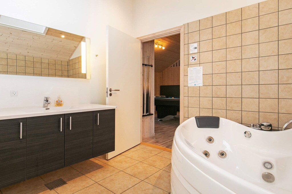 A large holiday cottage with whirlpool and sauna. Table tennis, billiard and dart can be found in the house. There is a 15 m² large bed loft with 4 mattresses and a skylight that you can open. Here you find a 22 inch TV with DVD player. In the living room there is also a 46 inch TV with a sound bar. You can connect your smart phone or ipad via an aux cable or Bluetooth. All bedrooms have 2 single beds (80 x 200 cm), that are placed together as double beds. In 3 of the bedrooms you can separate them. There is an energy saving heat pump where the temperature can be regulated. The house is suitable for several families. Outside there is a football goal, petanque, possibilities for playing volleyball, and playground with swings, climbing ropes and a slide. No letting to youth groups. A refundable deposit might be charged closer to your check-in date. The security deposit ensures a smooth stay and covers any additional services or consumption charges.This deposit covers utilities consumed during your stay and any additional services that may be taken.The final amount will be adjusted based on actual meter readings, actual usage of extra services, and any remaining balance will be refunded within 21 days after checkout.This deposit simply acts as a prepayment for charges that you would anyways pay for, ensuring a seamless stay and check-out experience.