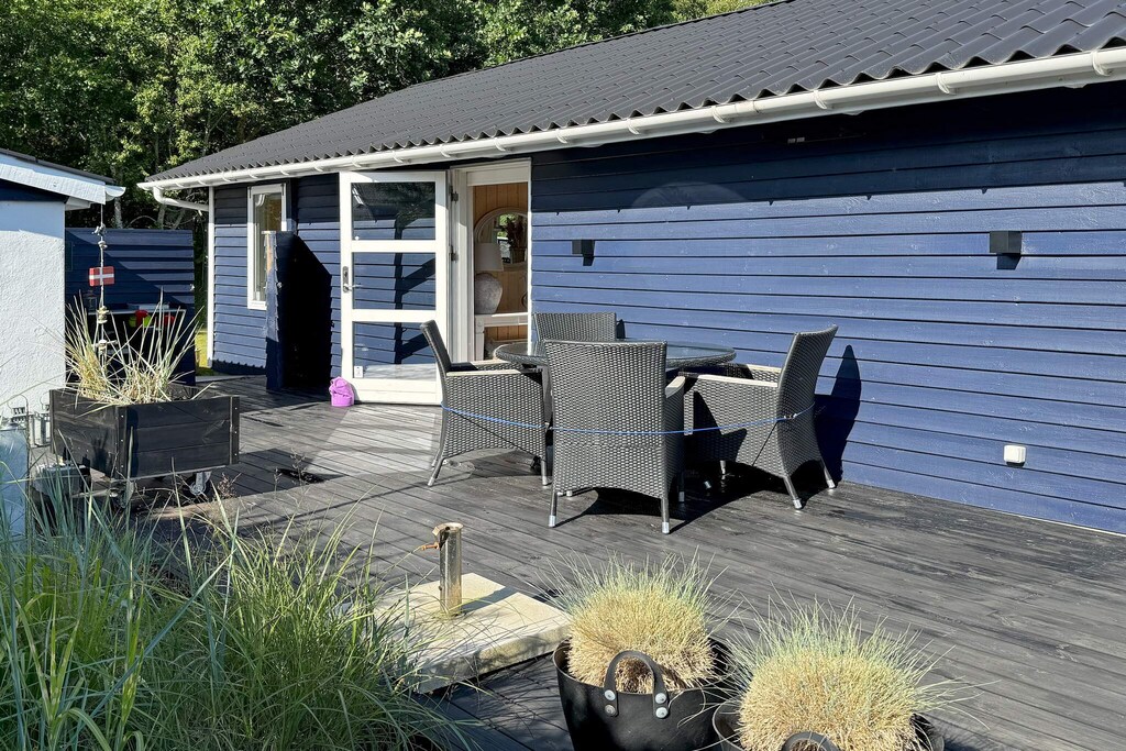 Just about 200 meters from one of Denmark’s most beautiful beaches near Hals, you will find this exceptionally well-maintained holiday home. The house features a modern kitchen, a spacious bedroom with a double bed, an additional bedroom with a double bed, and a bathroom with a shower. There is also a large annex with a double bed, plus a toilet and a sink with cold water. The holiday home is thoughtfully designed, offering plenty of space in the living area for both dining and relaxation. It is equipped with a heat pump and a wood-burning stove for comfort in all seasons. From the living room, there is direct access to a large south- and west-facing terrace, partially screened by a wooden fence for privacy. The large lawn in front of the house is perfect for ball games and outdoor activities. An EV charging station is installed on the fence in front of the house. To use it, download the Monta EV charging app, link your credit card, scan the QR code provided inside the house, and pay via the app. The charger is compatible with all car types. Please note that the property is not rented to youth groups.A refundable deposit might be charged closer to your check-in date. The security deposit ensures a smooth stay and covers any additional services or consumption charges.This deposit covers utilities consumed during your stay and any additional services that may be taken.The final amount will be adjusted based on actual meter readings, actual usage of extra services, and any remaining balance will be refunded within 21 days after checkout.This deposit simply acts as a prepayment for charges that you would anyways pay for, ensuring a seamless stay and check-out experience.