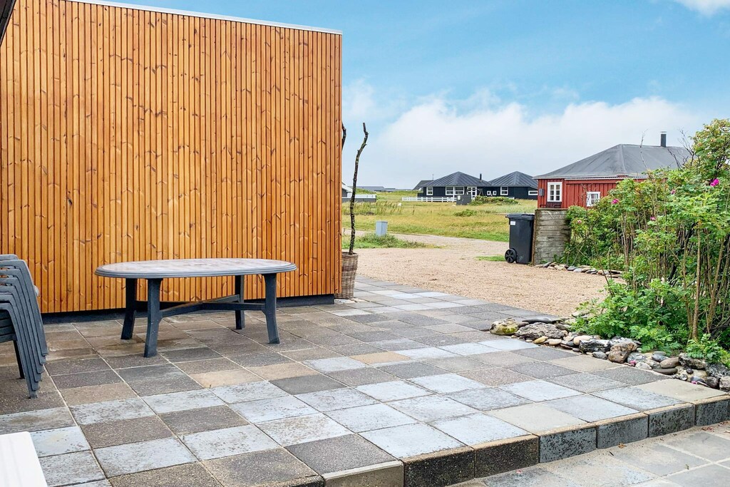 Well-situated holiday home in the 1st row approx. 100 m from the North Sea. The cottage is bright and practically furnished with a combined living room and kitchen. The living room has comfortable furniture and a TV with international channels. There is a wood-burning stove. The kitchen is equipped with a ceramic hob, microwave, fridge/freezer and dishwasher. Three bedrooms. Bright bathroom with toilet, sink, shower and underfloor heating. For the youngest guests there is a cot and high chair. There is both an open and covered terrace at the house. The newly built entrance hall has a washing machine and tumble dryer and plenty of storage space. There is free access to Harboørecentret.A refundable deposit might be charged closer to your check-in date. The security deposit ensures a smooth stay and covers any additional services or consumption charges.This deposit covers utilities consumed during your stay and any additional services that may be taken.The final amount will be adjusted based on actual meter readings, actual usage of extra services, and any remaining balance will be refunded within 21 days after checkout.This deposit simply acts as a prepayment for charges that you would anyways pay for, ensuring a seamless stay and check-out experience.