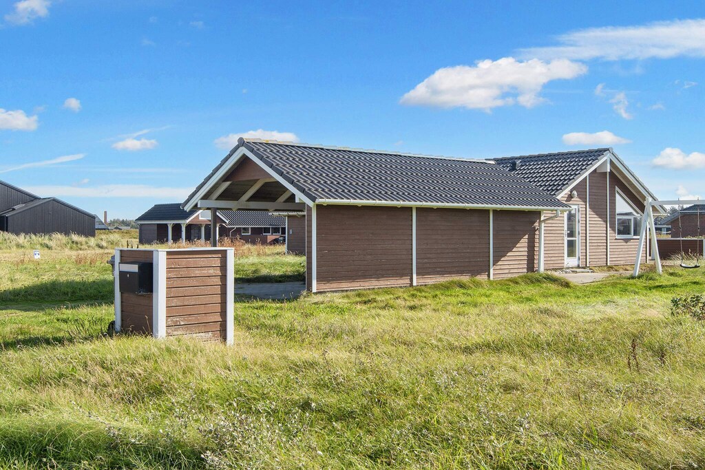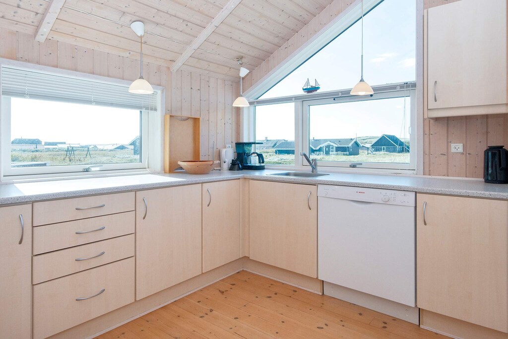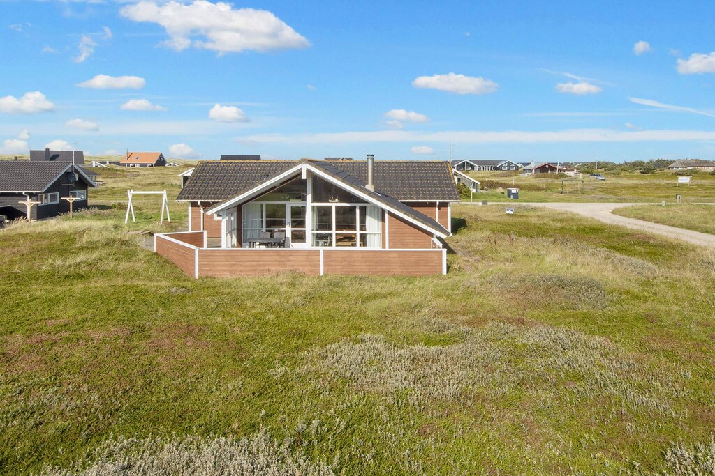 Well-located cottage in Vrist with whirlpool and sauna as well as a sloping ceiling. The house appears bright and inviting and is practically furnished with a combined living room and kitchen with access to the terrace. The living room has a TV, DVD player, stereo with radio and CD player and wood burning stove. The kitchen has i.a. electric stove, microwave and dishwasher. For the youngest guests there is a cot and high chair. The house has three bedrooms, guest bathroom, washer and dryer as well as large bathroom with whirlpool and shower. Both bathrooms have comfortable underfloor heating. From the bathroom there is direct access to the house's sauna, where you can be warmed up after a swim in the fresh waves of the North Sea or a long walk in the area's beautiful but rugged nature. There is a lovely terrace where you can enjoy dinner while the sun sets over the North Sea. The house is located on a natural plot approx. 200 m from the roaring North Sea, has its own carport as well as swings and sandpit. Not for rent to youth groups.