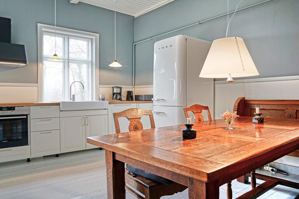 Idyllically located cottage above Vang with only about 1200 m to Vang Pier, where there is a small sandy beach. In Vang you will also find one of the island's best restaurants, which is open all year round. The house was renovated in 2020 with large, bright dining and living room with high ceilings. The kitchen from 2020, which contains a large Smeg fridge-freezer as well as all the necessary modern facilities, exudes cosiness and there is ample dining space for the whole family. The house is surrounded by garden with rock outcrops and views of forest and fields. The area is ideal for walking and cycling to Ringebakkerbrudet, Jons Kapel and the cozy little fishing village Vang, which can all be reached within a few kilometers. Not for rent to youth groups.