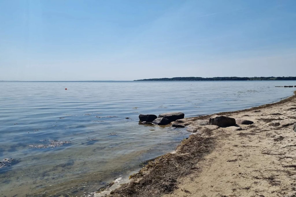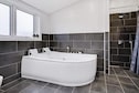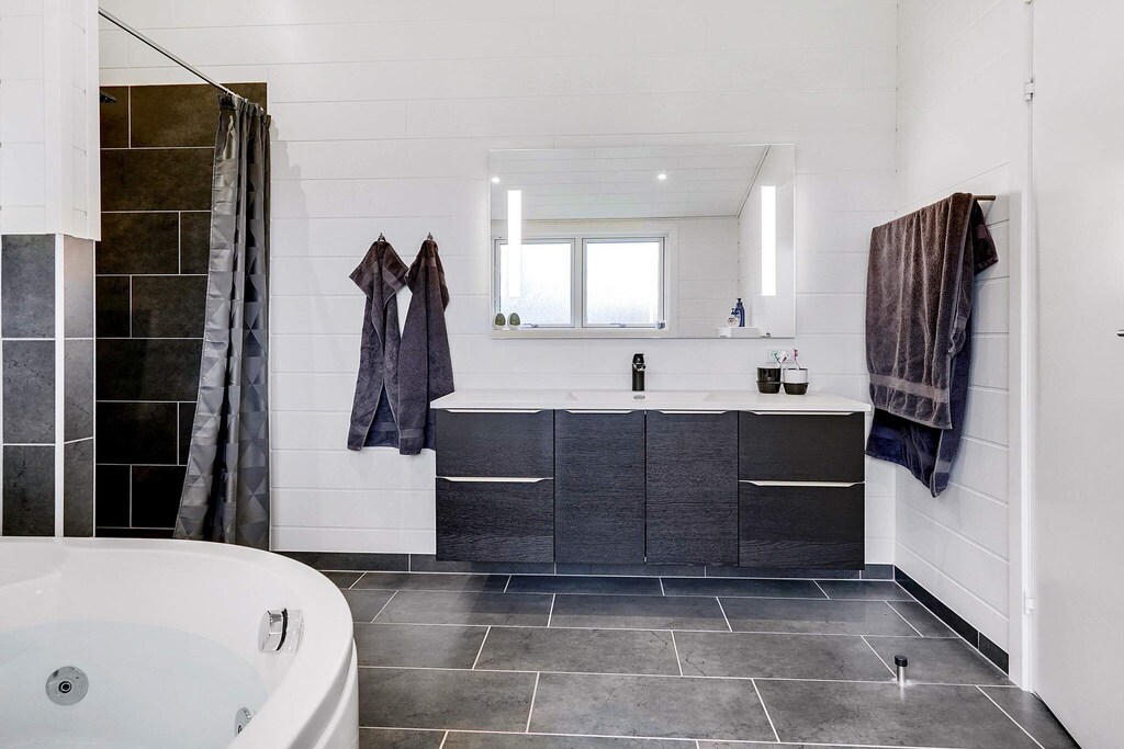 In Hejlsminde you will find this holiday home from 2019 and rent it out for the first time in the summer of 2021. With a total of 121 m2, you will have a large and bright kitchen / living room and four bedrooms. After an active day at e.g. the beach you get a difficult choice when you have to choose between the indoor spa or the outdoor jacuzzi, where you can take a glass of bubbles out and sit in the warm water and look at the stars on a dark evening. In general, the outdoor life is something very special with two covered terrace areas as well as a huge open terrace area of 75 m2 with outdoor furniture and a couple of sunbeds available. On one of the covered terraces you will find the house's gas grill, so you can grill in all kinds of weather. The whole house is equipped with geothermal heat, which provides cheap heat for e.g. all floor areas in the house. In addition, there are i.a. washer, dryer, dishwasher, large freezer and a smart TV. There is no TV package but Chromecast so that can be streamed. Please note that access to the bedroom is through another bedroom. Please note that the extra bed is only 1.75 cm long. In one room there is a Nintendo Wii, and on the lawn you will find football goals for fun for children and childish souls. Close by you will find several playgrounds. Free admission to SlotssøBadet in Kolding. Not for rent to youth groups.