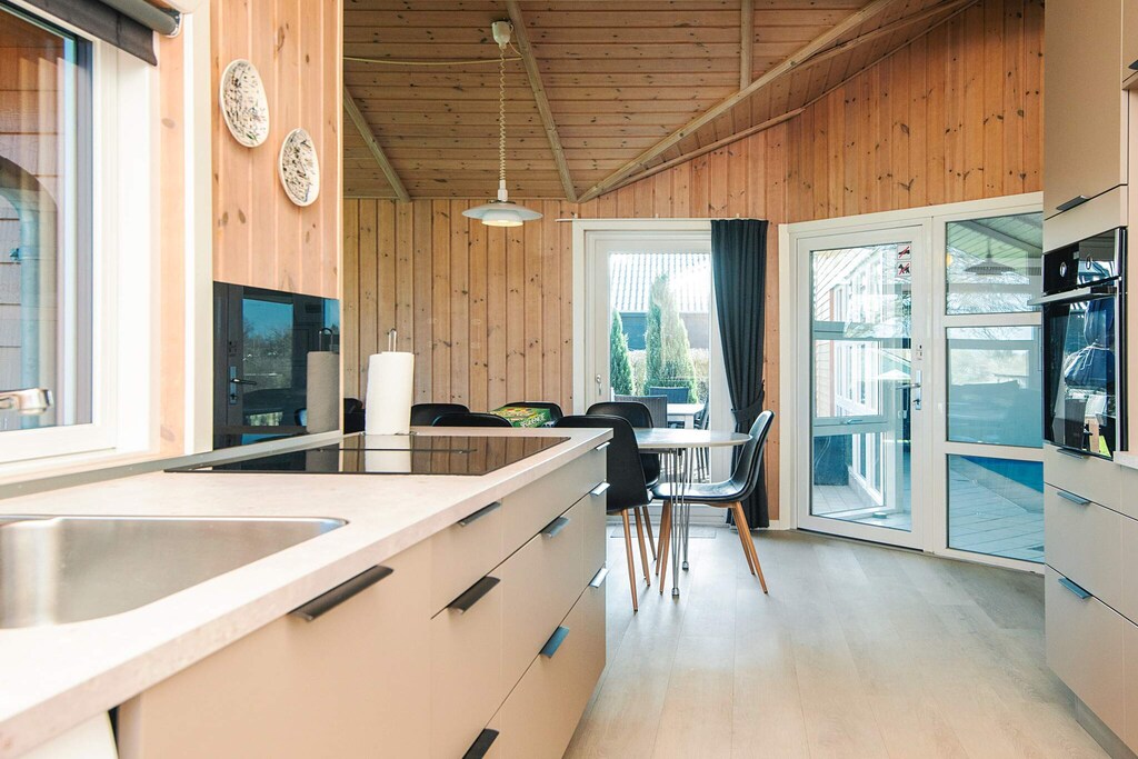 A holiday cottage with solar panels, located at the end of a closed road on an enclosed plot. There is a pool room with large panoramic windows, and you can enjoy the view both from the swimming pool and whirlpool. In the pool area with integrated spa, there is direct access to both a sauna and a bathroom with a large shower and a toilet with disabled handles. In addition, there is an extra toilet with washing machine, dryer and changing area and 3 rooms and an alcove. In the garden there are swings and a sandbox for children and a pathway that leads down to the water.A refundable deposit might be charged closer to your check-in date. The security deposit ensures a smooth stay and covers any additional services or consumption charges.This deposit covers utilities consumed during your stay and any additional services that may be taken.The final amount will be adjusted based on actual meter readings, actual usage of extra services, and any remaining balance will be refunded within 21 days after checkout.This deposit simply acts as a prepayment for charges that you would anyways pay for, ensuring a seamless stay and check-out experience.