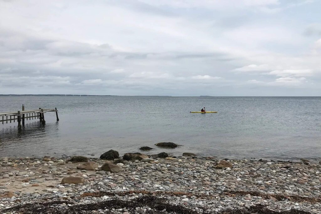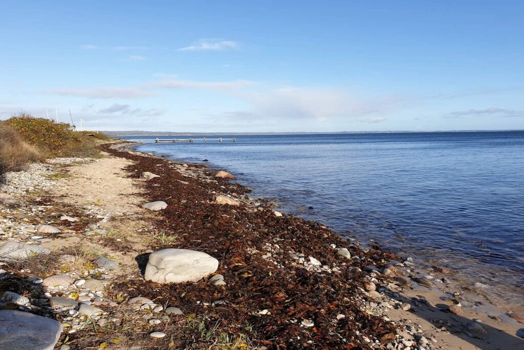 In the middle of one of the quietest areas on Mols is this cottage with whirlpool and sauna and plenty of space for the large family to have fun together. From the 1st floor of the house you can see the water and up here children and young people can sleep in 3 different rooms. The kitchen is in close connection with the dining room, so here everyone can have fun together, no matter if you have to cook or play games. On the ground floor there are three bedrooms each with two sleeping places. In the bathroom you will find the whirlpool and a large sauna, which can loosen the muscles after a long walk in the area. On the grill you can cook outdoors when the weather allows it. The house is located at the end of a closed road, so all possibilities for peace and quiet are present. Not for rent to youth groups.