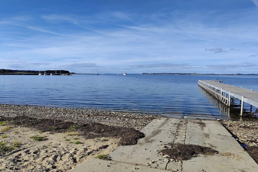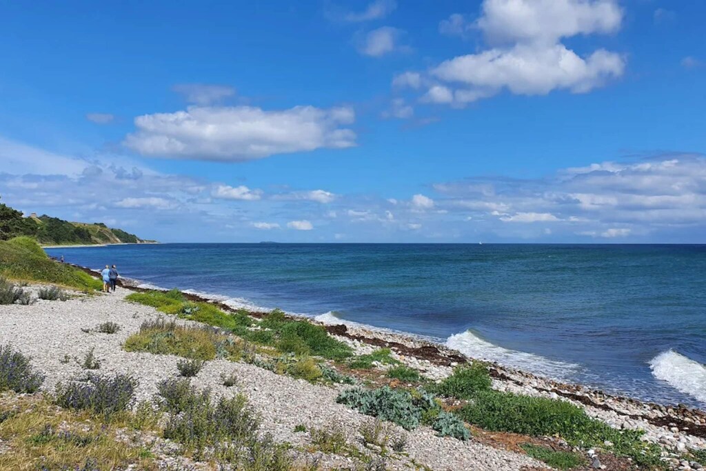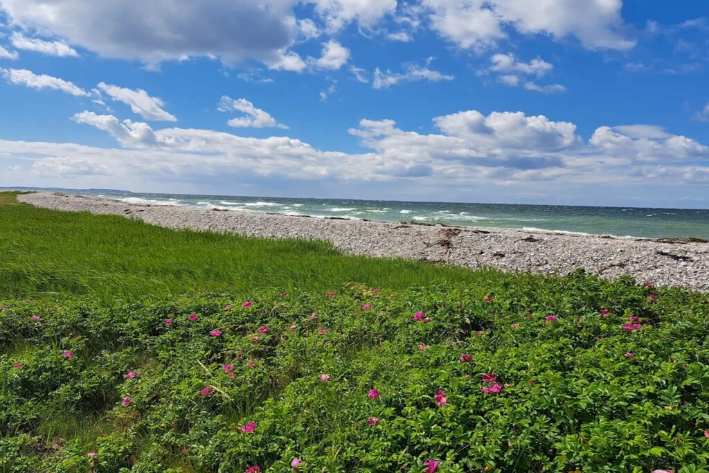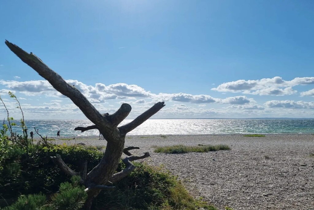 This cottage from 2017 has a nice window area, which gives a really nice light. The house is located in a quiet holiday home area with many opportunities for hiking in Mols Naturpark, which is right outside the door. The kitchen is part of the living room and dining area, so everyone can participate, both when playing games or cooking. There is a bathroom with rainwater shower and plenty of space throughout. Not for rent to youth groups.