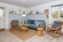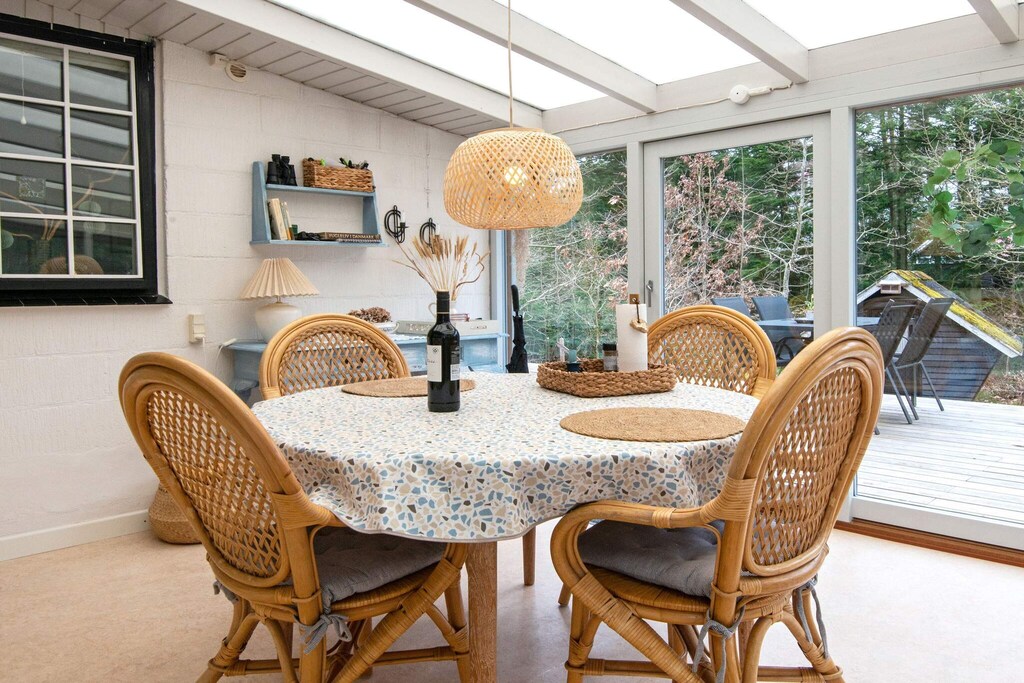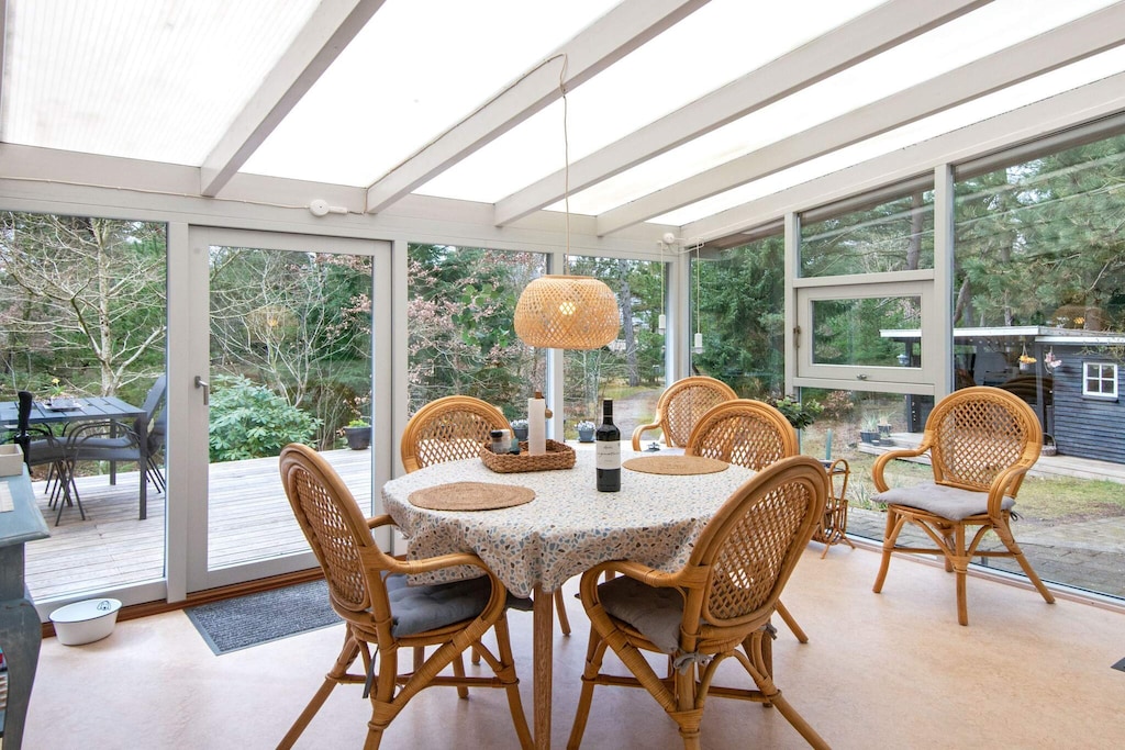 A holiday cottage located only 4 minutes from Hemmet Strand. You can access the conservatory from the living room. The plot is completely fenced in and it is safe for your dog to run around in. The trees around the plot creates a nice atmosphere and you can spot rabbits and squirrels here. The house and terrace are secluded on the plot, sheltered by trees. No letting to youth groups.A refundable deposit might be charged closer to your check-in date. The security deposit ensures a smooth stay and covers any additional services or consumption charges.This deposit covers utilities consumed during your stay and any additional services that may be taken.The final amount will be adjusted based on actual meter readings, actual usage of extra services, and any remaining balance will be refunded within 21 days after checkout.This deposit simply acts as a prepayment for charges that you would anyways pay for, ensuring a seamless stay and check-out experience.