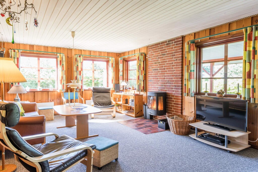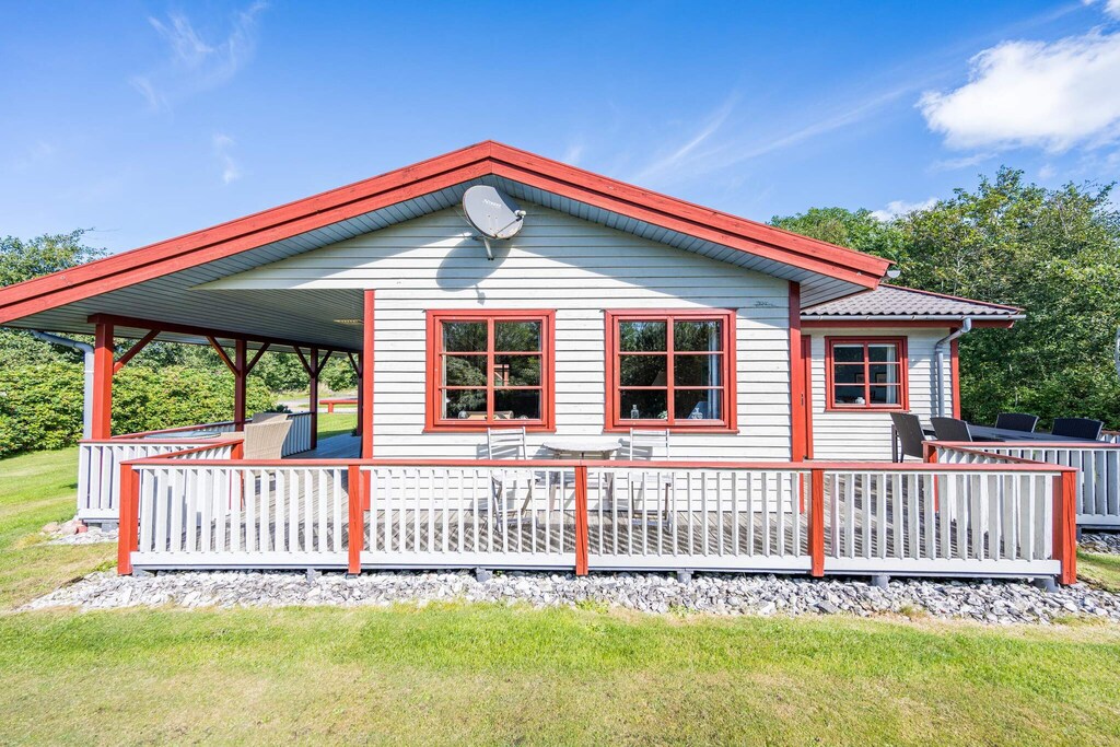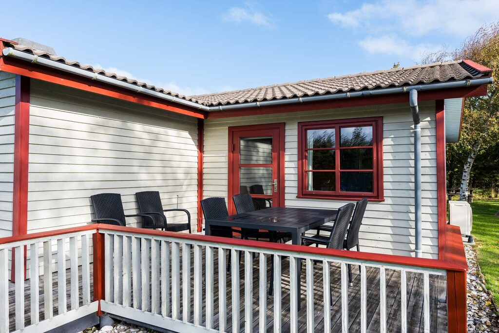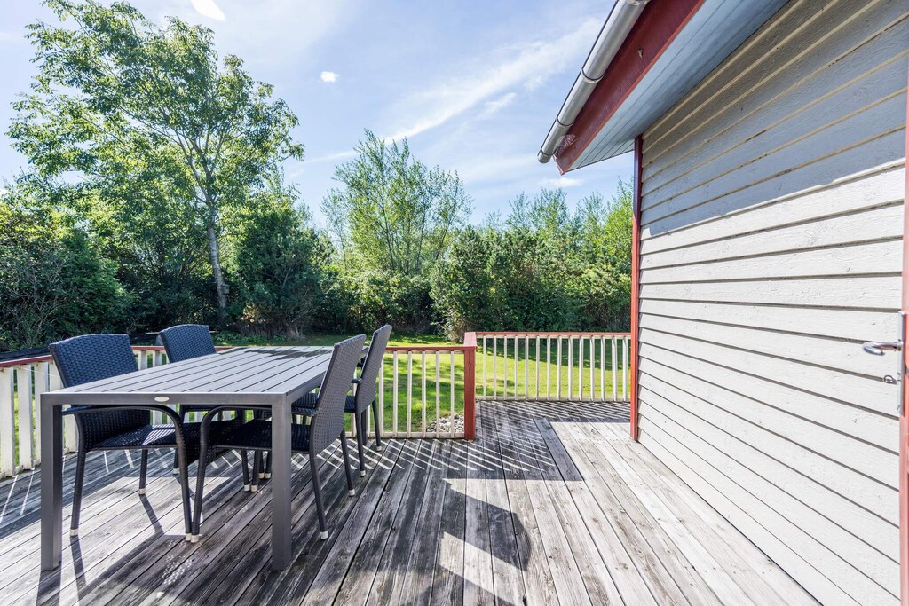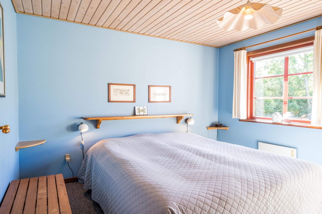 As soon as you drive onto the property and see this lovely vacation home in Bork Harbor, you immediately think of “Little House on the Prairie”—the terrace is one of the first things you fall in love with. It exudes coziness and has a small roof over it, so you can sit and just look out over the property in all kinds of weather. This vacation home is decorated in a really cozy style, where everything fits together really well - the house clearly shows that many happy hours have been spent here with the family. Lovely large spacious living room with access to the kitchen, where a small dishwasher has been installed. All bedrooms are well and spaciously furnished, and the bathroom is bright and newly renovated in 2017. A really nice holiday home - very close to both Bork Harbour and the surf spot. Just 25 meters from the house is a large playground with a slide, swing, climbing frame, and barbecue hut. Includes free final cleaning!