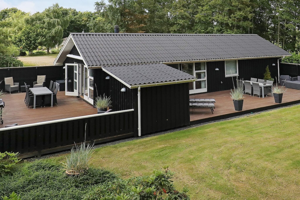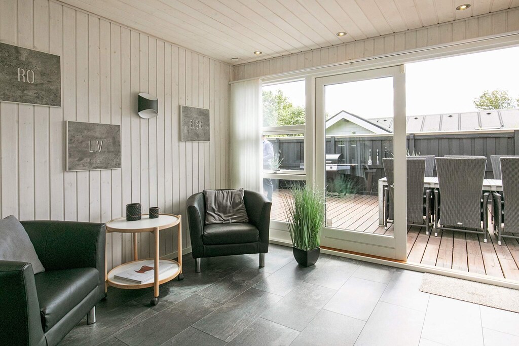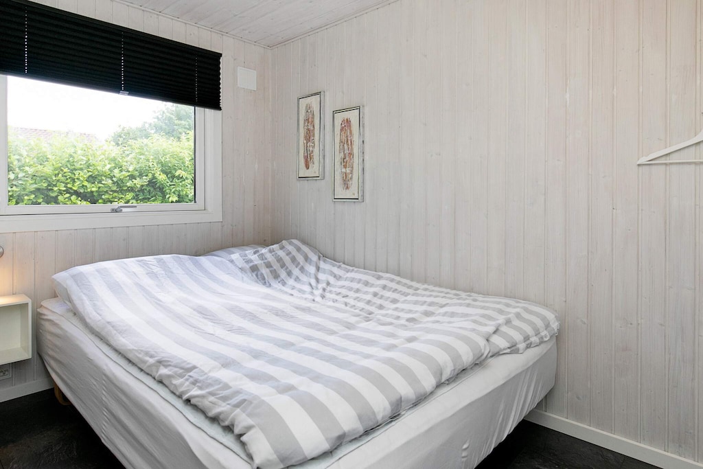 Holiday home located only approx. 600 meters from the fjord with a good, child-friendly beach. In the cottage there is outside as well as inside what you will appreciate when the holiday goes to Bork Harbor. There is a built-in coffee machine, wine refrigerator and American refrigerator with ice cube maker. You will find plenty of space for up to six people here. Outside you will find the wooden terrace to the east and south, completely undisturbed and nice with optimal shelter conditions and a good opportunity to enjoy the sun all day long. The cottage is heated by air / air heat pump, electric heating and wood stove. Free admission to Outrup Golf Club on approved 9 hole course, can also be booked as pay & amp; play. Not for rent to youth groups.