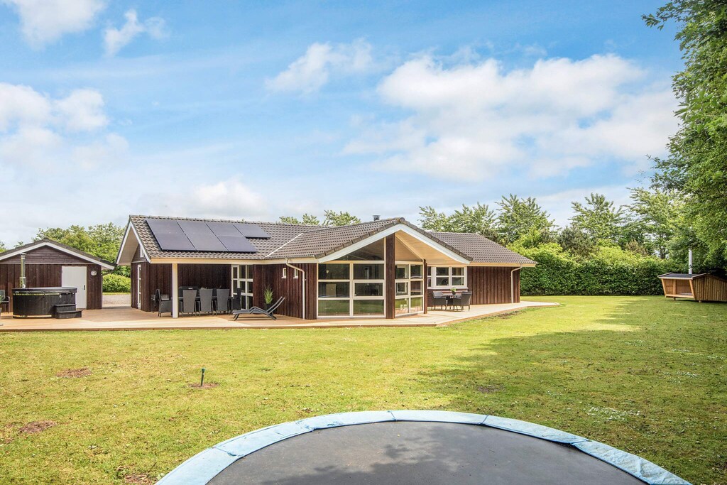 Really tastefully decorated and delicious cottage from 2007. The house is well furnished with, among other things, a nice large living room in open connection with a well-equipped and modern kitchen. The house has 2 bathrooms, one of which is furnished with a spacious spa, as well as a sauna. From the living room there is also access to a beautiful large wooden terrace, with several beautiful nooks and crannies. It should also be mentioned that there is a large nice activity room with both pool and billiard table, so you can compete about a lot and a lot. On the grounds there is also a trampoline for children and childish souls. Free final cleaning!