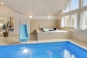 Well-appointed holiday cottage that offers everything the heart desires of activities. The large pool area features a large swimming pool with water slide and swim coach, sauna, shower and whirlpool. After a good and eventful day, it is nice to slip into the large whirlpool or get warm in the sauna. On the other side of the centrally located dining/living room you will find the activity room where you can play a game of darts or billiards at the pool table. Here you can also challenge each other in tennis or football games. Even stereo, PlayStation and flat-screen TV are installed in the activity room. The house is very spacious and well-dimensioned and built with separate sleeping quarters with a bathroom. The house has no doorsteps and have extra width of doors and rooms compared to traditional homes, giving ample space. There is underfloor heating throughout the house. Family-dining room is tastefully furnished with a stereo with CD player, flat screen TV, lounge area and wood-burning stove. Outdoors you will find a sandpit and swings for the children. Large, open terrace as well as a covered. The house is located on a large plot within walking distance of Henne Strand and just opposite a pay and play golf course. No letting to youth groups.