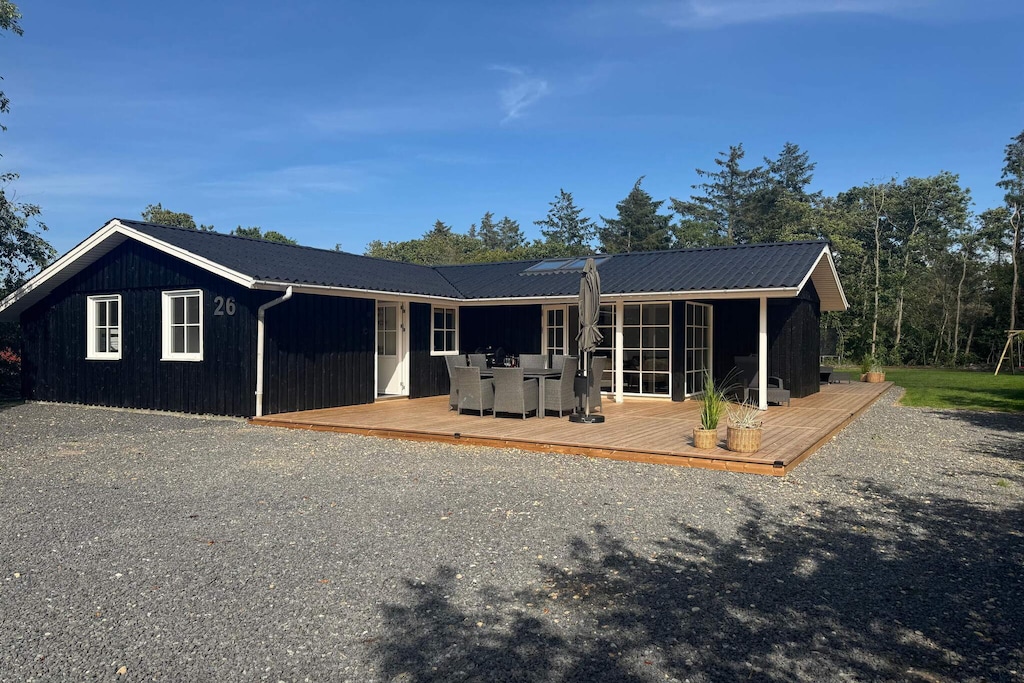 Set in the scenic surroundings of Blåbjerg Plantage and just a short walk from the golf course in Henne, this inviting holiday home promises both relaxation and adventure. With its private pool, hot tub and sauna, it offers bathing fun in every season, whether you’re splashing with the kids, unwinding after a round of golf, or indulging in pure wellness. The house is nestled on a large natural plot, giving you plenty of space to enjoy the outdoors. Several terraces wrap around the property, perfect for sunny breakfasts, lazy afternoons or cosy evenings under the open sky. Inside, the living room is the heart of family life. Here, the glow of the wood-burning stove creates a warm and welcoming atmosphere, flowing easily into the dining area and kitchen. From part of the living room, you even have direct views into the pool room, so you can keep an eye on the bathers while enjoying your own downtime. Designed with families in mind, this holiday home combines comfort with playful charm, making it easy to enjoy quality time together. Whether you’re out exploring nature, playing a round of golf, or simply soaking in the hot tub as the day winds down, this is a place to recharge and reconnect. Please note: the home is not available for rental to youth groups.A refundable deposit might be charged closer to your check-in date. The security deposit ensures a smooth stay and covers any additional services or consumption charges.This deposit covers utilities consumed during your stay and any additional services that may be taken.The final amount will be adjusted based on actual meter readings, actual usage of extra services, and any remaining balance will be refunded within 21 days after checkout.This deposit simply acts as a prepayment for charges that you would anyways pay for, ensuring a seamless stay and check-out experience.