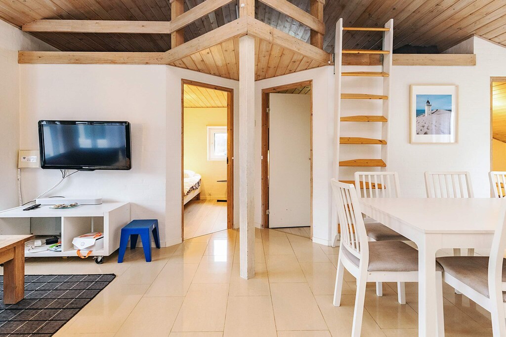 Stor stue med åpen kjøkkenløsning, veldig sosial sone, Ellers god plass i og utenfor huset til at vi 8 feriegjester kunne være sammen eller hver for oss, alt ettersom hva den enkelte ønsket å gjøre, Også plass til å invitere gjester, Nydelig beliggenhet med kort gåavstand til Lønstrup sentrum, herlig sted hvis man liker ta en joggetur ned til havet og langs stranden eller oppå strandklittene,