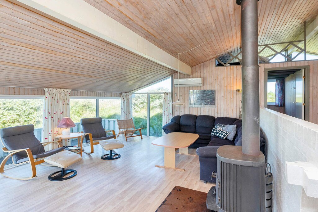 This area in Vendsyssel is known for its scenic nature since there are so few places elsewhere in Denmark with so many free pleasures. Flickering sunshine, warm flurry weather or when the setting sun gives the sea the same color as the amber that can be found on the beach. In this lovely area you will find this pool house on a dune plot overlooking Hirtshals' lighthouse, Lønstrup and Rubjerg Knude. The house is tastefully decorated and has a wood-burning stove. Living room is lowered two steps in relation to the rest of the house. Here you can relax in front of the TV with cable-TV and radio. The big kids will surely conquer the mezzanine as their sleeping space. The central part of the house, the pool, will be the setting for many seaside pleasures for the whole family. The house is also equipped with a sauna. Kitchen with microwave and dishwasher. No letting to youth groups.A refundable deposit might be charged closer to your check-in date. The security deposit ensures a smooth stay and covers any additional services or consumption charges.This deposit covers utilities consumed during your stay and any additional services that may be taken.The final amount will be adjusted based on actual meter readings, actual usage of extra services, and any remaining balance will be refunded within 21 days after checkout.This deposit simply acts as a prepayment for charges that you would anyways pay for, ensuring a seamless stay and check-out experience.