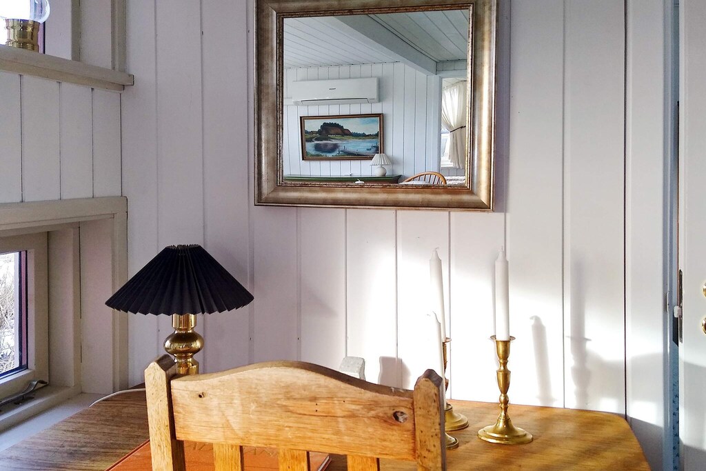 Well-located cottage with good, personal decor and a nice sea view from the living room and terrace. Only a short walk from the sea and beach in the attractive holiday area Harrerenden a little north of Lønstrup. The house contains a living room in open connection with the kitchen, three bedrooms and a bathroom with underfloor heating and shower. For cheap heating, a wood-burning stove and air-to-air heat pump are installed, which can also be used as air conditioning. There are several open terraces to the east, south and west. The ground is slightly hilly dune ground. Not for rent to youth groups.
