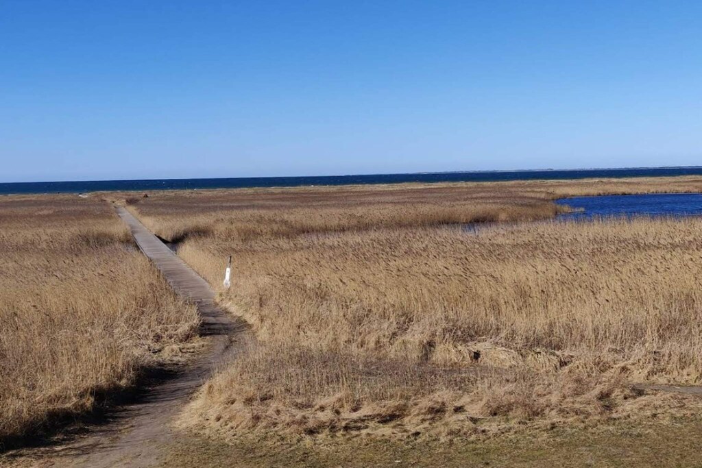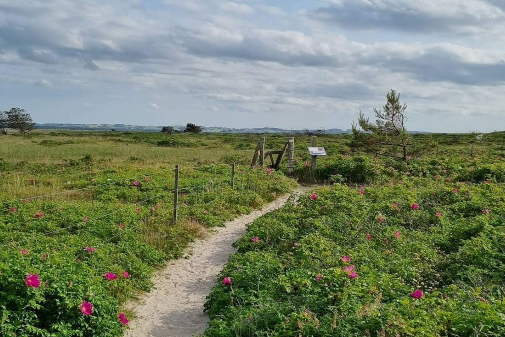 Holiday home on a closed road in a quiet area in Ellinge Lyng. There is an open kitchen in connection with a bright living room and high ceilings. The house has TV with Chromecast with the option to watch DR1 via app and own streaming services via own internet. There are two double bedrooms, a room with a single bed and a sofa bed in the living room. From the living room you step out onto a large tiled terrace with terrace covering with roof curtain, garden furniture, sun lounger, barbecue and fireplace. Here the sun, peace and garden can be enjoyed all day long. There is a terrace on both sides of the house whose shade is sought. Garden with many different plants, shrubs and herb garden for free use. The plot is fenced. Approx. 350 meters from the house is Ellinge Indhegning, the area's forest with many deer, flowers and mushrooms. Not for rent to youth groups.