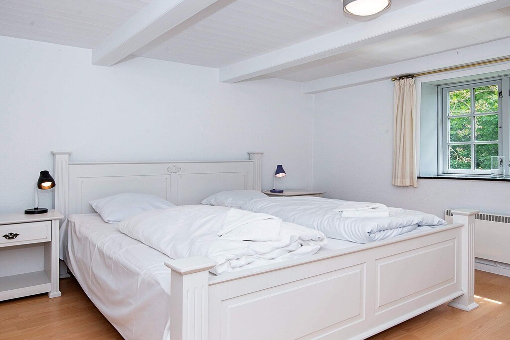 At the end of a cul-de-sac and towards a peaceful by Rudbøl area lies this charming, thatched cottage. The house offers three good double bedrooms, a large and bright bathroom with shower and kitchen and dining room, from which there is access to a secluded, east-facing tiled terrace with good opportunity to enjoy your morning coffee. Please note that there is free access to the communal swimming pool at the campsite. The house is incl. Linens and towels. Not for rent to youth groups.