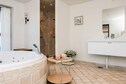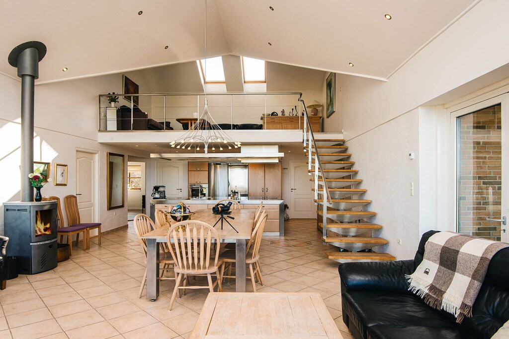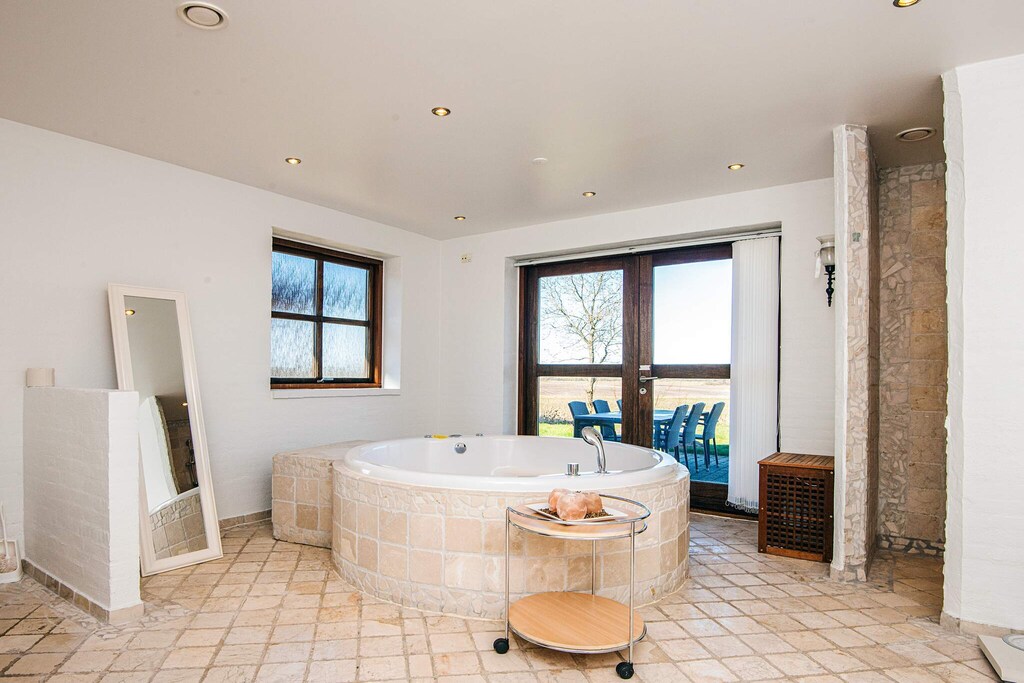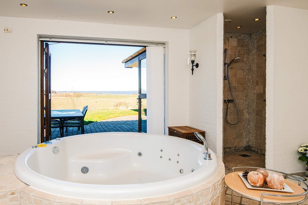 Large and unusual cottage with whirlpool, sauna and panoramic views of the Limfjord approx. 200 meters from the fjord. There are large terraces by the house where you can enjoy dinner while the sun goes down in the west. The house is bright and modern decorated. The living room has a TV and wood burning stove. The large living room is furnished with comfortable and modern furniture. The kitchen is modernly furnished and combined with the living room. Among other things, ceramic hob, separate freezer and dishwasher. There are four bedrooms as well as a loft. Two bathrooms, one with large shower and a large whirlpool, from which there is a view of the water. From the bathroom there is direct access to the house's sauna. The area offers beautiful nature and the opportunity for peace and relaxation while the children can safely frolic on the large grounds, and in the area where there is only very little traffic. You can enjoy dinner on the terrace while the sun sets over the Limfjord. Craftsman and youth groups are not allowed.