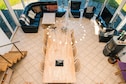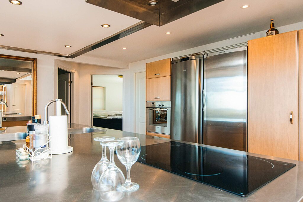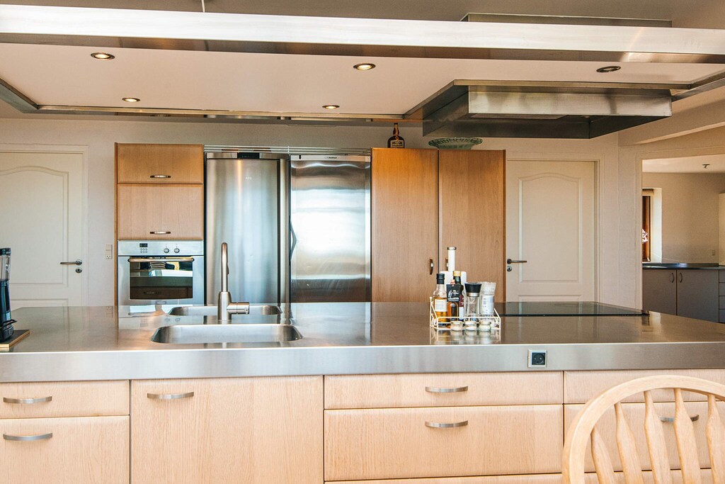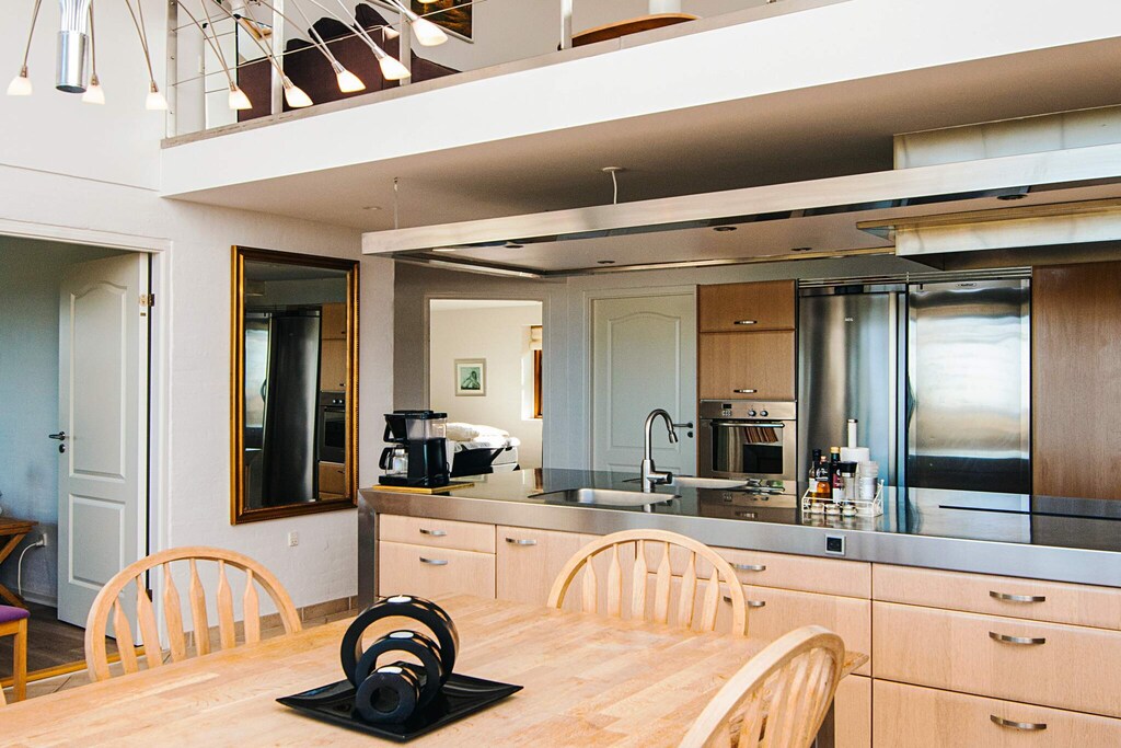 Meget god plads, og køkken veludstyret, men dårlig lyd pga hårde overflader, / Ingen hjemme arbejdspladser,