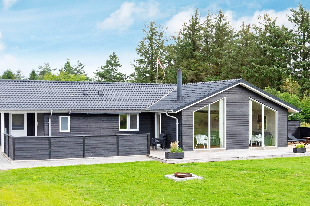 This bright cottage with whirlpool and sauna located by Virksund offers lots of exciting details. The house is very well furnished with four bedrooms. There is modern furnishings, free internet and TV with international channels. Two bathrooms with shower and underfloor heating, one with whirlpool and sauna. There is a washing machine. The well-equipped kitchen has i.a. dishwasher, microwave, ceramic hob and fridge-freezer. There are good terraces. For a good bathing beach there are approx. 500 m.