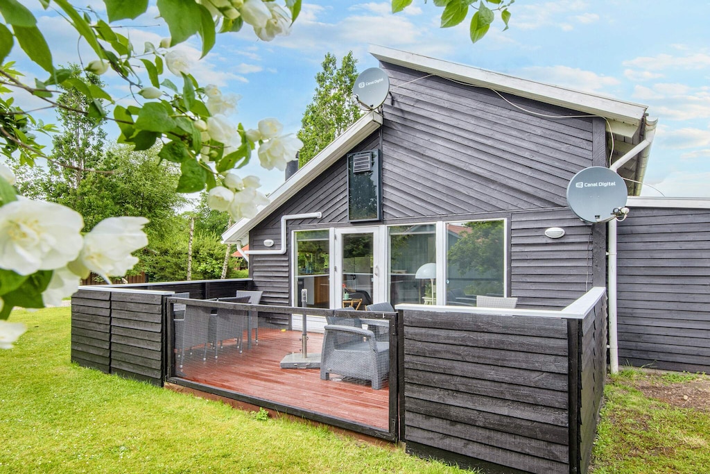Well-appointed cottage located in the scenic area Hovborg, which is suitable for families with children, as there is almost no traffic. There is a nature playground approx. 2 minutes walk from the house. The cottage is a stone's throw from Holme Å, where there is an outdoor cleaning area for fish. Not for rent to youth groups.