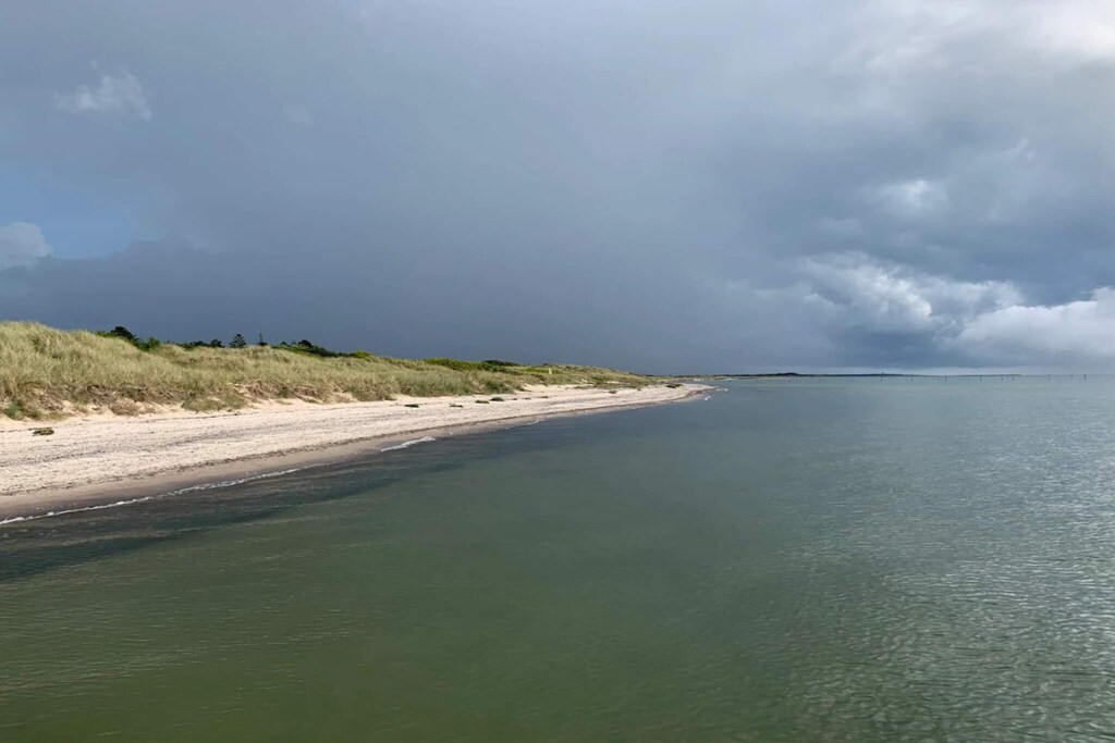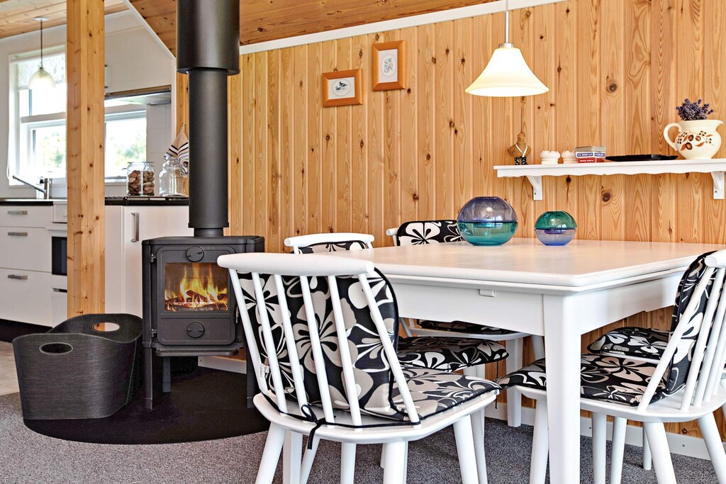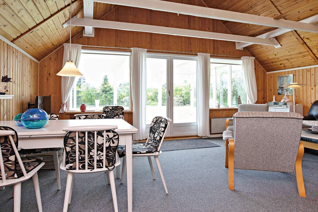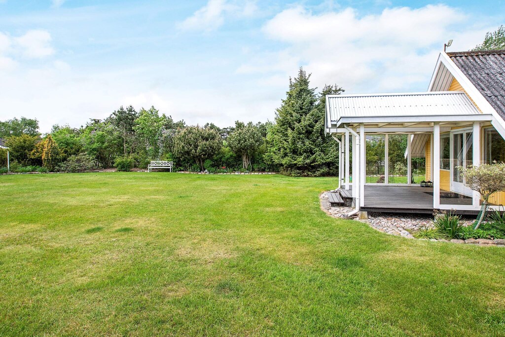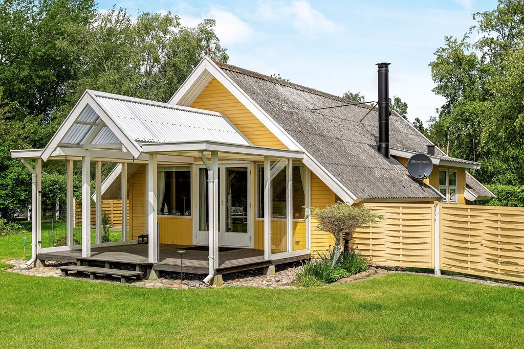 This holiday home is located by Hummingen, one of Lolland's most beautiful beaches. The cottage is furnished with an open kitchen with a fantastic light, two bedrooms and a bright living room with both access to a covered terrace and access to a large loft with two beds. There is a bathroom with toilet, sink, shower and underfloor heating. In the attached annex there is the possibility of two more beds. The kids will love playing in the cave in the tree while the adults enjoy a cool drink on the patio while the grill handles dinner. Not for rent to youth groups.