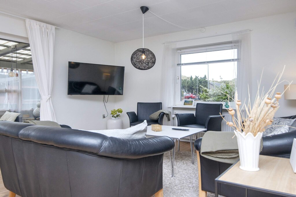 Well-appointed and cozy detached house only about 200 m from the North Sea and about 500 m from the center of Hvide Sande and Ringkøbing Fjord. The furnishings are cozy and family-friendly. The house sleeps eight in three bedrooms; one with a double bed and two with wide, sturdy bunk beds with enough space for an adult in both lower bunks. The bathroom has a large walk-in shower. There is plenty of space for jackets and shoes in the hallway. There is plenty of storage space throughout the house. Bright kitchen with plenty of storage space and a dishwasher. There is a wood-burning stove in the kitchen-diner. You can relax on the sofas and watch a Netflix movie or stream your own content. From the living room, you have a view of the dune landscape to the west. In a separate room, there is table tennis and darts for leisure fun. In the garage next door, there is enough space for surfing equipment, for example. Beautiful, fenced-in property with a sheltered terrace area for sunny days and cozy summer evenings. The house is heated with inexpensive and climate-friendly district heating produced by wind and solar energy. Its location in the middle of Hvide Sande, yet quiet and scenic with heathland and dunes, makes it ideal for a relaxing vacation close to the beach and the North Sea.A refundable deposit might be charged closer to your check-in date. The security deposit ensures a smooth stay and covers any additional services or consumption charges.This deposit covers utilities consumed during your stay and any additional services that may be taken.The final amount will be adjusted based on actual meter readings, actual usage of extra services, and any remaining balance will be refunded within 21 days after checkout.This deposit simply acts as a prepayment for charges that you would anyways pay for, ensuring a seamless stay and check-out experience.