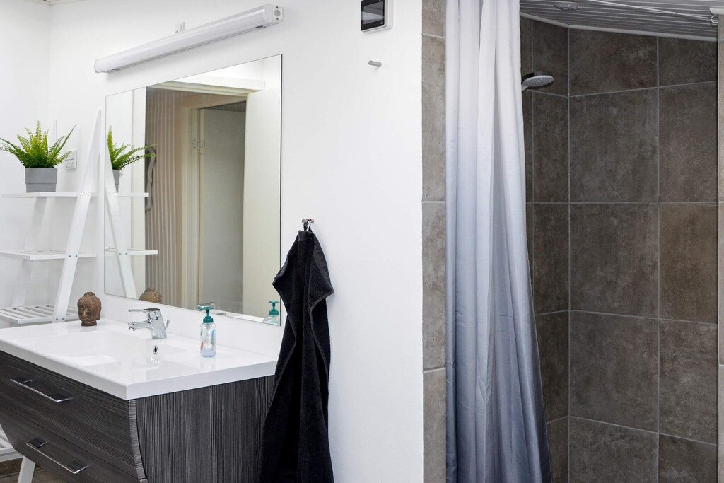 Holiday home approx. 400 meters from one of Denmark's best beaches in Marielyst. The cottage is furnished with three good bedrooms, two of which are with a double bed and the last room is with two single beds. There is an open kitchen and living room with i.a. large wood stove in the living room, which can heat almost the whole house. Decorated in bright colors. The bright and open kitchen is equipped with ceramic hobs, separate oven with grill, extractor hood, microwave and fridge / freezer. Bright bathroom with i.a. skylight, which provides good light. There is also underfloor heating and a washing machine in this room. For the little ones there is a cot and high chair. Good terrace with barbecue and space for cosiness in the good summer evenings. Not for rent to youth groups.