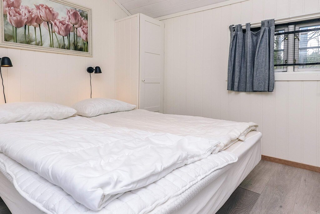 Well-kept cottage with whirlpool and sauna located by Bratten Strand, which has a jetty, grocery store and playground. The cottage is well furnished with large bathroom with corner bath, shower and sauna. There are three good rooms with closet space and a loft with two mattresses. Annex from 2020 with two beds. Large and bright kitchen in open connection with the corner living room, where there is a wood stove and access to the terrace, where you can enjoy the sun undisturbed and follow the activities on the large, landscaped lawn. Activities include trampoline and volleyball nets.