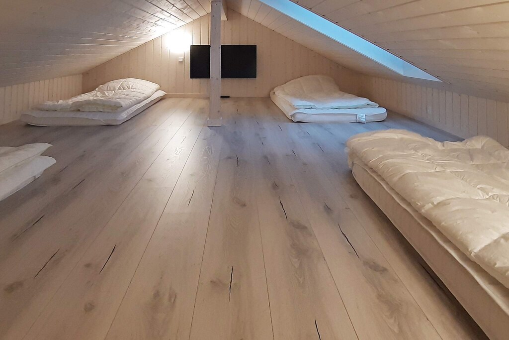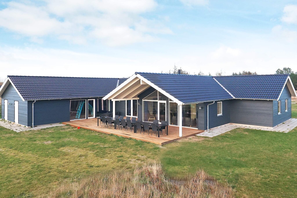 Large, high-quality vacation home with swimming pool, hot tub, and sauna close to Skagen. There is room for the whole family, and the cottage's many activities invite hours of fun and play. Let the water lovers splash around in the swimming pool with a water slide and counter-current system. The pool is a saltwater pool, which means it has the lowest possible chemical content and is therefore skin-friendly. Treat yourself to a dip in the luxurious hot tub and the warm sauna, which can give you the full wellness experience and holiday relaxation. The activity room has a pool table, foosball, table tennis, and a stereo system with a CD player. There are several TVs in different areas with smart TVs and Swedish and Norwegian channels. The dining/living room is tastefully decorated with two high chairs, a sofa area, and a wood-burning stove. The well-designed kitchen with wood-burning stove has a refrigerator and a large freezer, as well as two dishwashers and two stoves, so there are plenty of opportunities for cooking. The house is extremely spacious and well-proportioned, built around four separate sleeping areas at one end of the house and five bedrooms connected to the activity room, with a total of nine bedrooms. Each section has its own bathroom, and there is an additional bathroom connected to the pool area and activity room. In addition, there is a loft that is perfect for children to play in or watch a good movie on TV. On the grounds, there is a play tower, swing, sandbox, and trampoline (used at your own risk/insurance). To the east and west, there are nice terraces with good garden furniture where you can enjoy the sun and have cozy barbecue evenings. The cottage is located in some of North Jutland's most beautiful nature in the very popular Bratten: Here there is plenty of space between the cottages, and wildlife can be experienced up close. Not rented to youth groups. BORROW PICTURES.A refundable deposit might be charged closer to your check-in date. The security deposit ensures a smooth stay and covers any additional services or consumption charges.This deposit covers utilities consumed during your stay and any additional services that may be taken.The final amount will be adjusted based on actual meter readings, actual usage of extra services, and any remaining balance will be refunded within 21 days after checkout.This deposit simply acts as a prepayment for charges that you would anyways pay for, ensuring a seamless stay and check-out experience.
