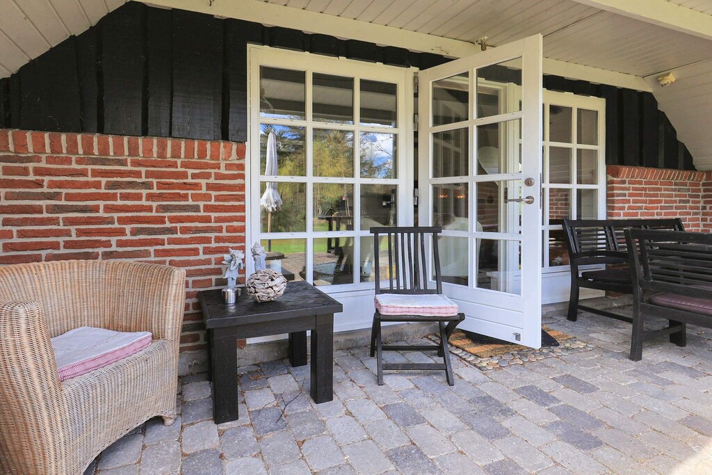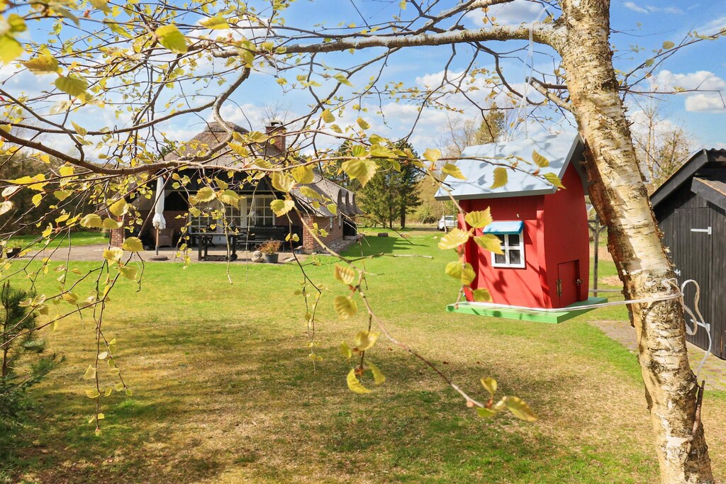 Holiday home in a class of its own located in a scenic area and only approx. 200 m from child-friendly beach and dunes. There is a bathroom with a spa bath. The house is decorated in a bright and modern style. Open kitchen / living room, living room with fireplace, where there is access to a covered terrace and three good bedrooms. The secluded garden is landscaped with a large lawn where there is room for activities. In addition, there is a playground only a short distance from the house. Not for rent to youth groups.
