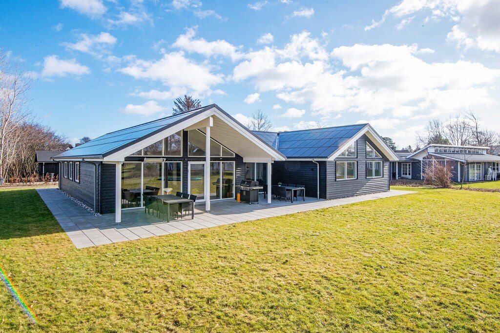 This well-appointed cottage close to the beach offers 18 m & # 178; swimming pool with slide for the kids. There is also a swimming coach, so all week you can improve your condition with daily swimming combined with pure relaxation in the whirlpool and sauna, which is located in the pool room. In the activity room you can compete in table football, billiards, electronic darts and table tennis while the rest of the family relaxes in the living room. In the well-thought-out kitchen, there is a large refrigerator, freezer and dishwasher and plenty of table space, so you can conjure up delicious meals. There is of course underfloor heating in the bathrooms as well as the rest of the house, which is otherwise heated with geothermal heat. There are TVs in different sections as well as PlayStation4 and DVD player for the kids' enjoyment. There is a sandpit and swings as well as a trampoline (used at your own risk / insurance) for the children. On the large terrace with patio you can enjoy the sun and have cozy barbecue evenings. Due to the size of the house, the price of cleaning at this Skanlux cottage differs from the normal list price. Settlement of consumption, cleaning and deposit is paid in cash on site to the caretaker. Note! Please note that the photos are model photos. Not for rent to youth groups.